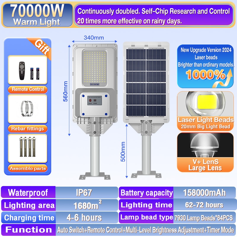 Lampu Solar Light Outdoor Lighting 85000W Solar Street Light Outdoor Waterproof IP67 LED solar outdoor Motion sensor