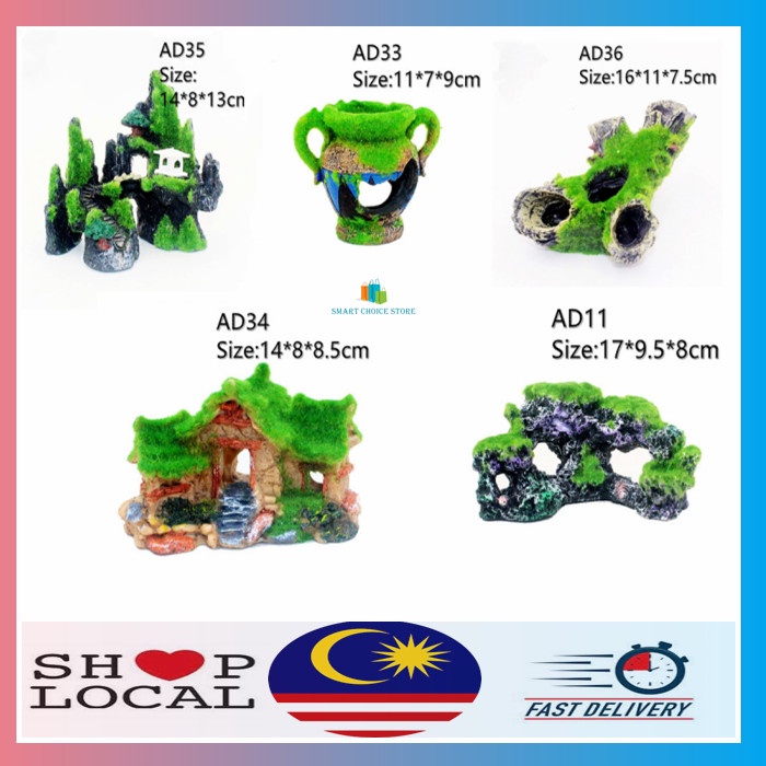😍Ready Stock😍 Fish Tank Aquarium Cave Moss Decoration Aquarium Mountain View Coral Landscape 仿真青苔珊瑚礁珊瑚摆