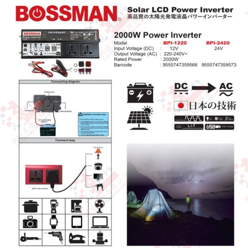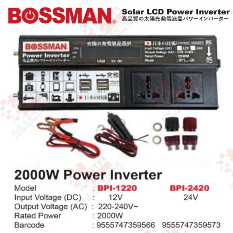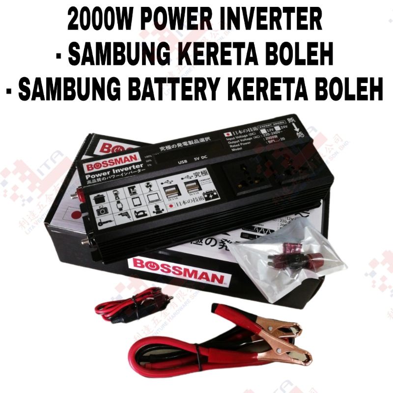 BOSSMAN POWER INVERTER 2000W 4USB PORT 13AMP PLUG 2PORT KERETA CAMPING HIKING KERJA WORK BOLEH PAKAI CUCUK SAJA