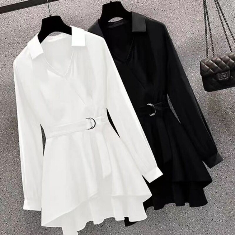 Long Blouse Waist Thin Casual Shirts Solid Color Casual Fashion All-match Shirt Top Formal Shirt Summer Autumn