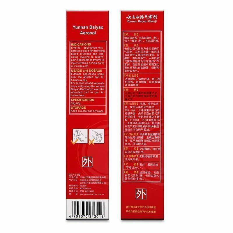 Yunnan Baiyao Aerosol spray 云南白药气雾剂 85g+60g 喷剂活血散瘀消肿止痛铁打扭伤