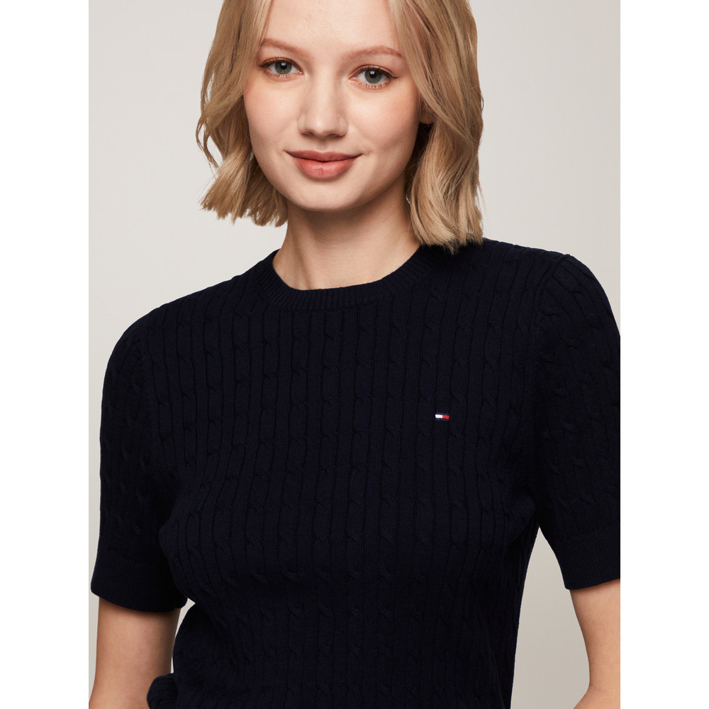 TOMMY HILFIGER Jenny Cable Knit Short Sleeve Sweater Women Regular Fit