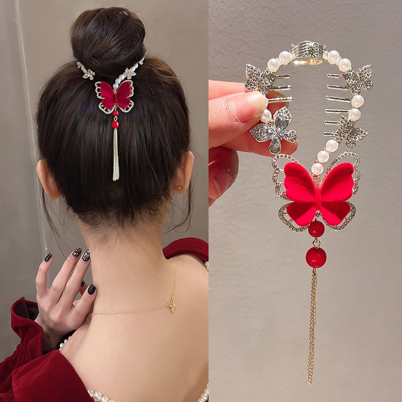 Perfect Gift Hairclip Children Cute Bow HairPin Pearl Tassel Bun Hair clip Claw Clips for Women Girls Kids