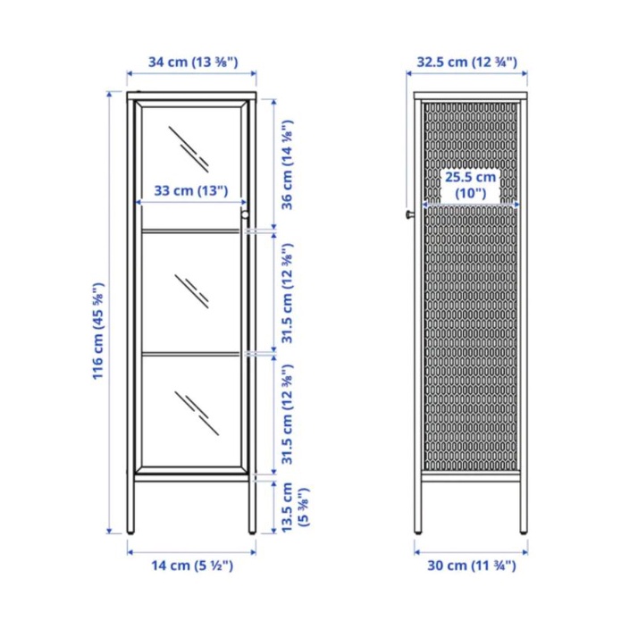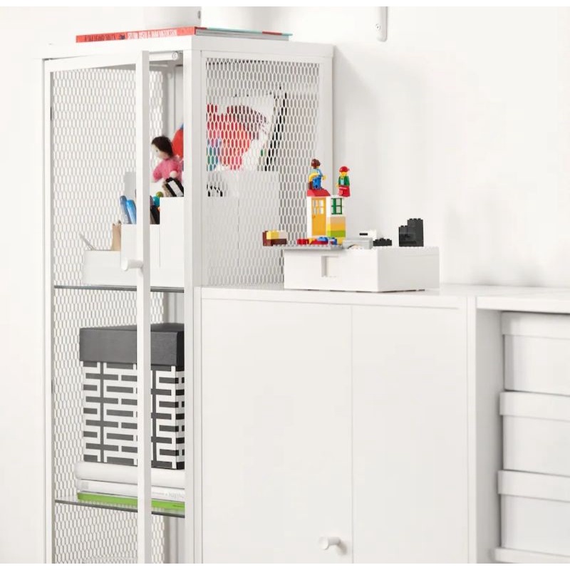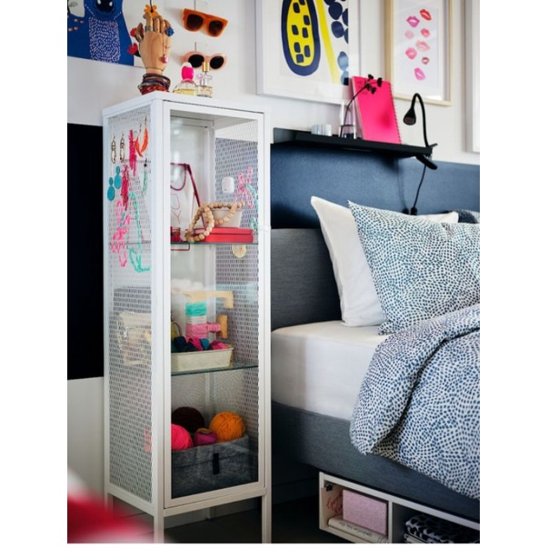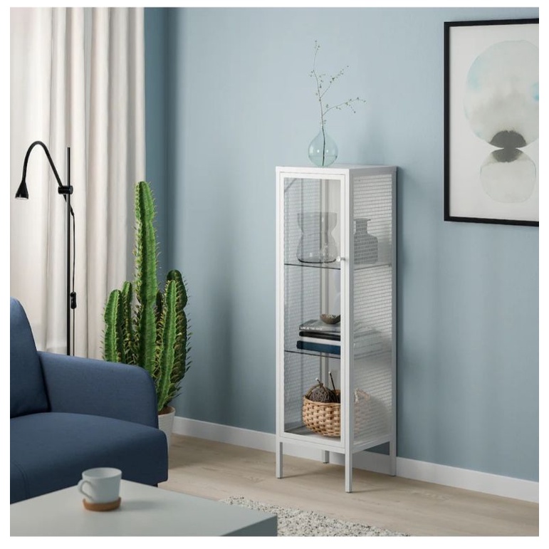 READY STOCK Baggebo,Cabinet with glass doors, metal/white34x30x116 cm