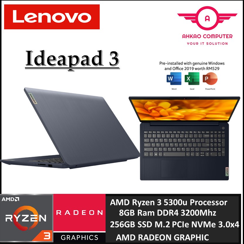 Lenovo IdeaPad 3 15ALC6 82KU01HWMJ 15.6'' FHD Laptop Abyss Blue ( Ryzen 3 5300U, 8GB, 256GB SSD, ATI, W11, HS )