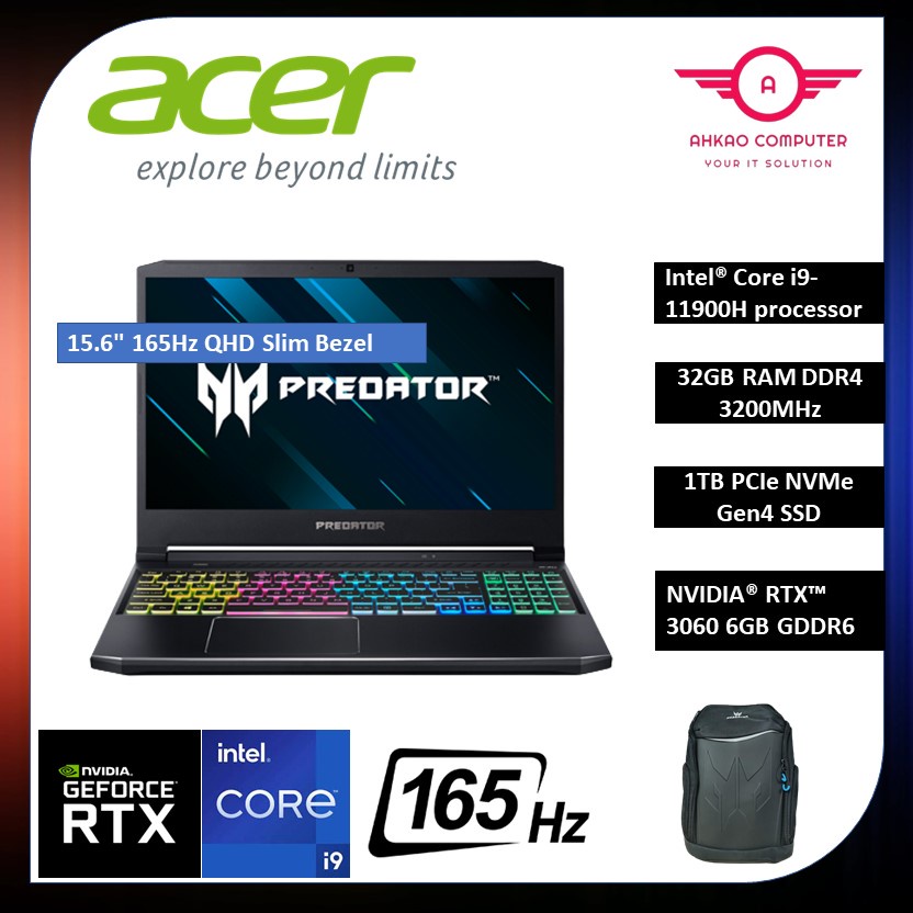 Acer Predator Helios 300 PH315-54-94XB 15.6" QHD 165Hz Gaming Laptop ( I9-11900H, 32GB, 1TB SSD, RTX3060 6GB, W11 )