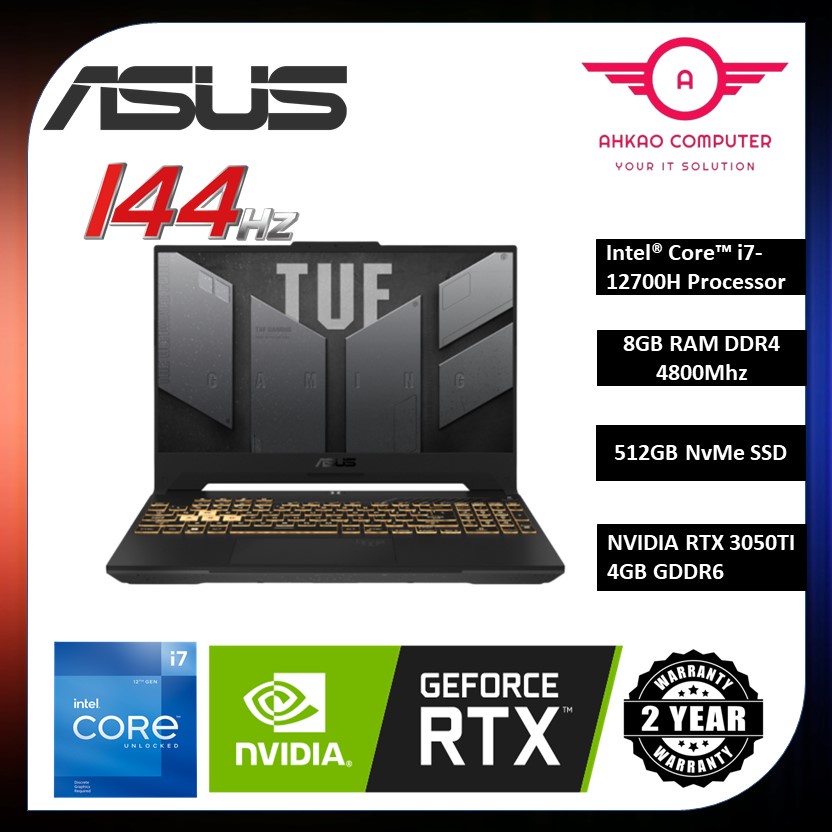 Asus TUF F15 FX507Z-EHN055W 15.6" FHD 144Hz Gaming Laptop Mecha Gray ( I7-12700H, 8GB, 512GB SSD, RTX 3050Ti 4GB, W11 )