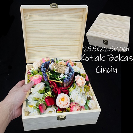 ❤❤Bekas Kayu Hantaran Cincin/Merisik/kahwin/tunang/kotak hantaran/gift box 22.5x22.5x10cm(set BEKAS SHJ)