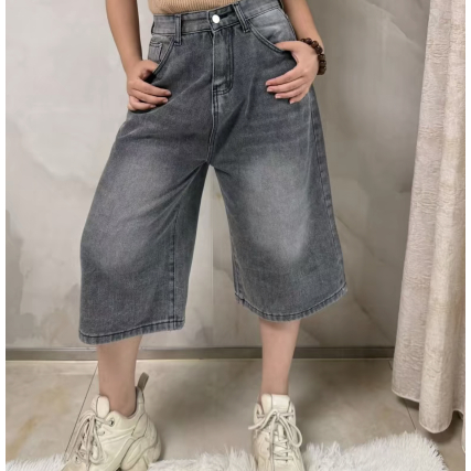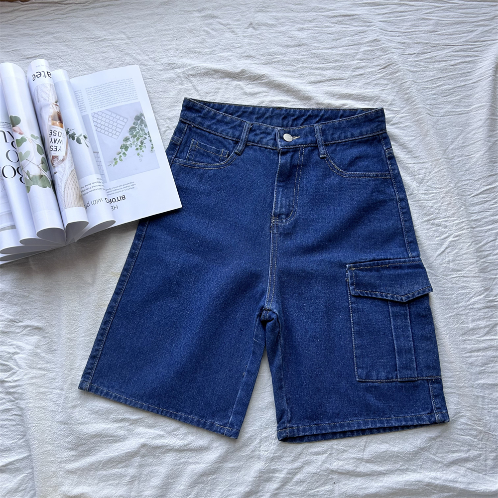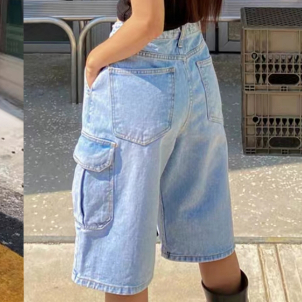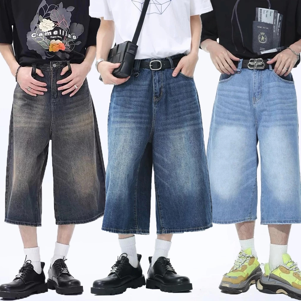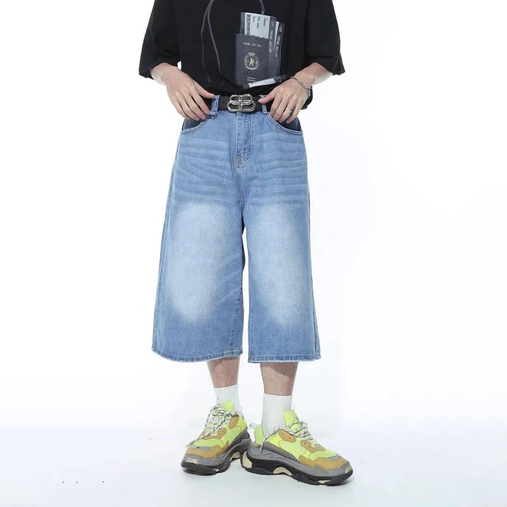 Jorts For Men Long Shorts High Quality Denim Shorts Baggy Casual Fashion Retro light dark blue unixe