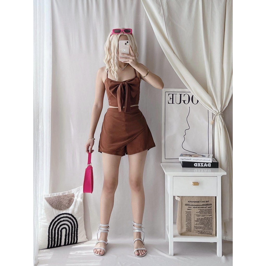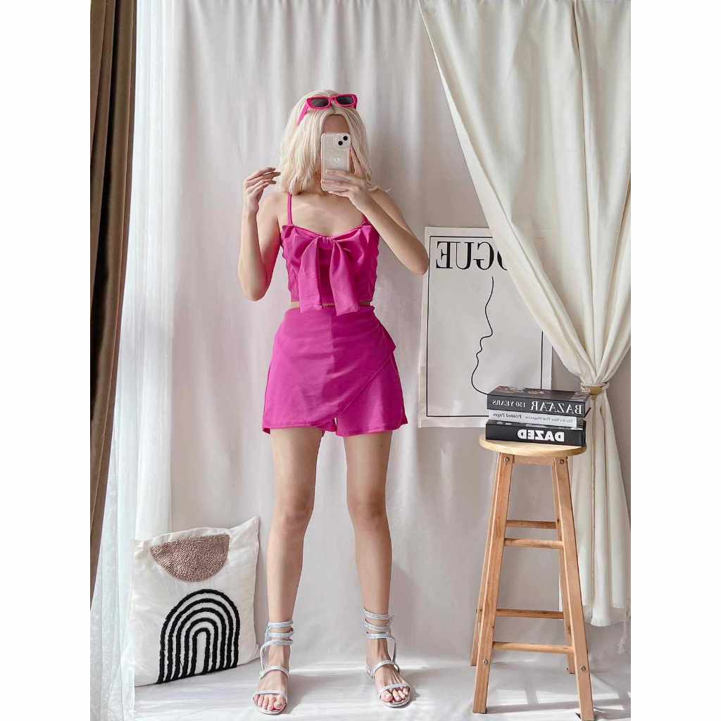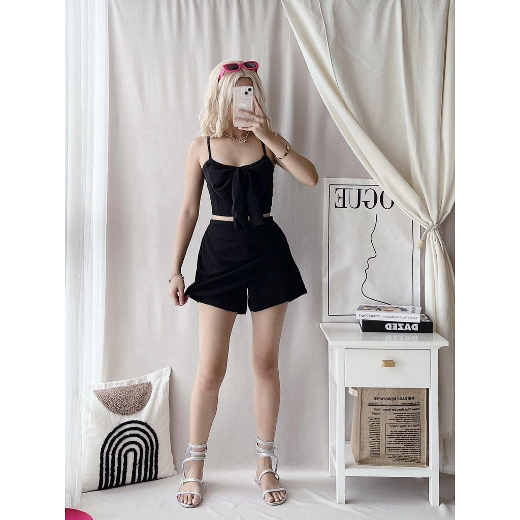 ZEALO Jayla Terno Ribbon Spaghetti Crop Top and Skort Baju Set Seluar OOTD Set Korean Style Set