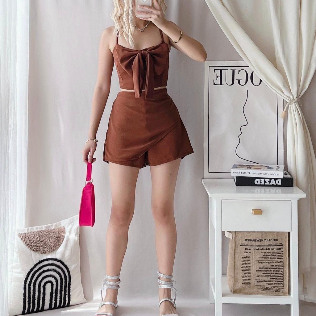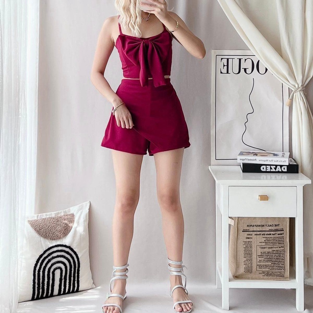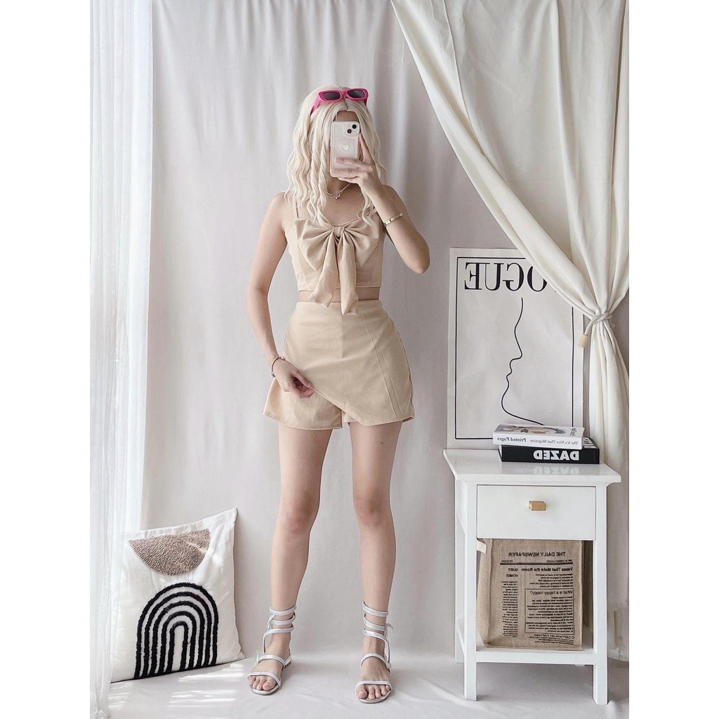 ZEALO Jayla Terno Ribbon Spaghetti Crop Top and Skort Baju Set Seluar OOTD Set Korean Style Set