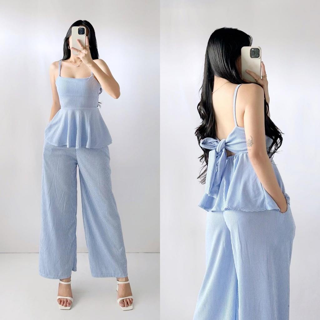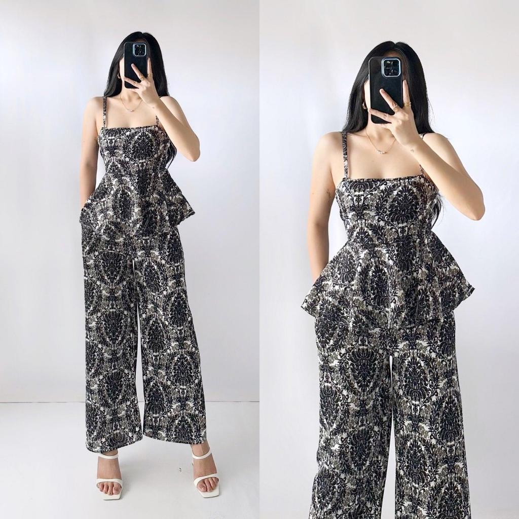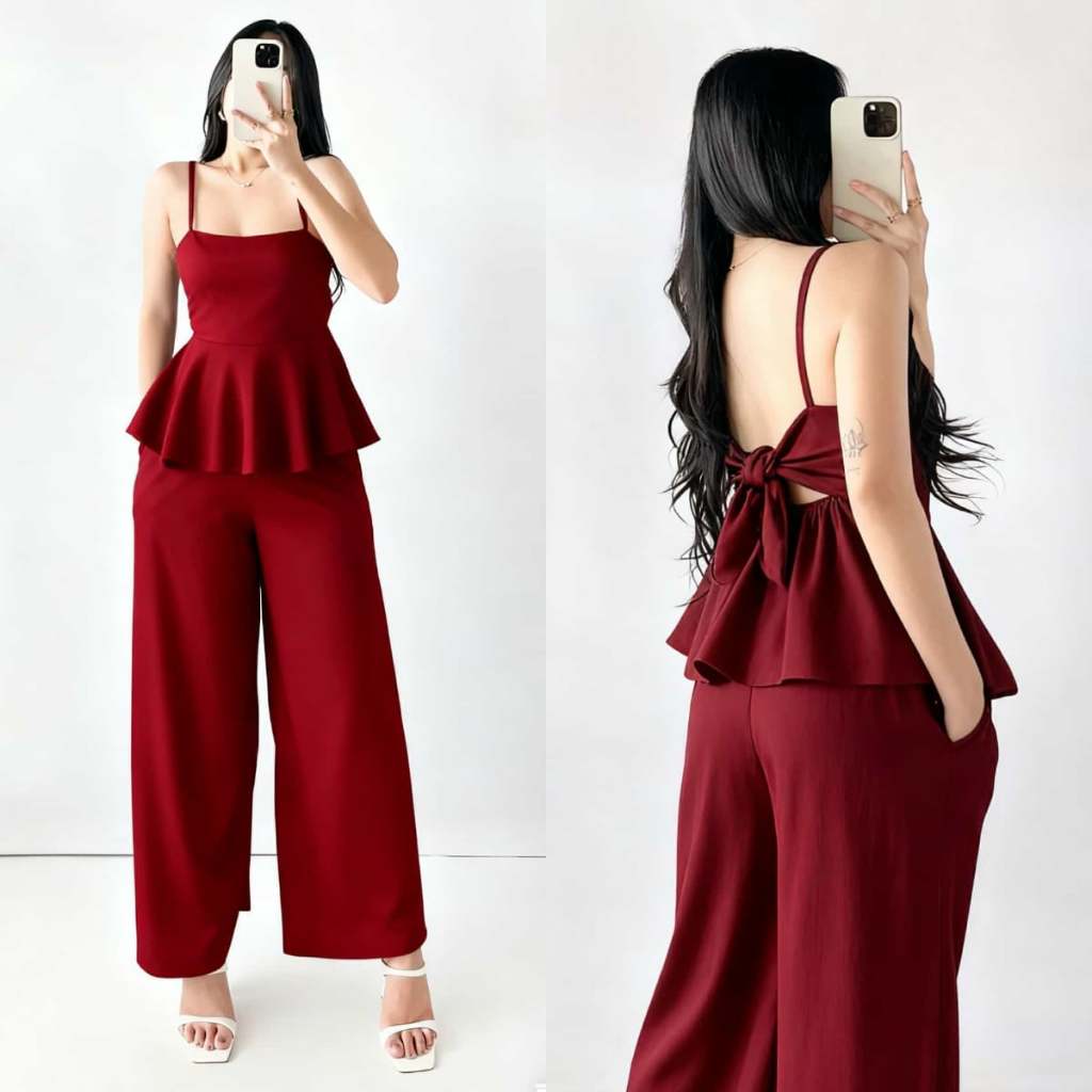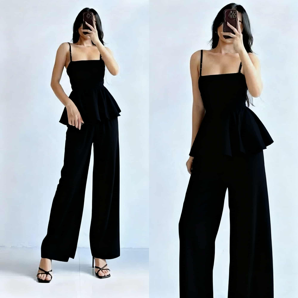 Checkered Print Casual Crepe Terno with Peplum Top and Wide Leg Pants | DA&ABOUT THE FIT (QUENNIE)