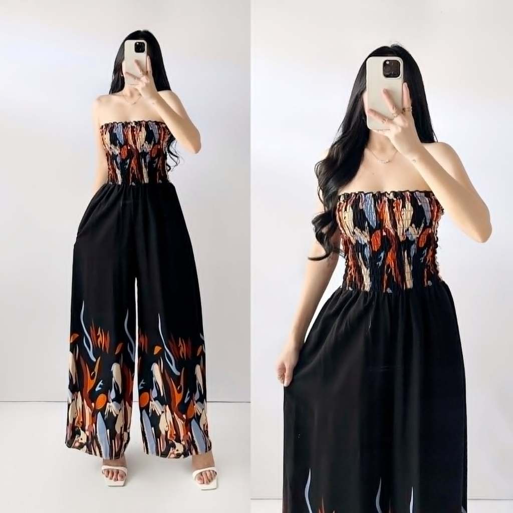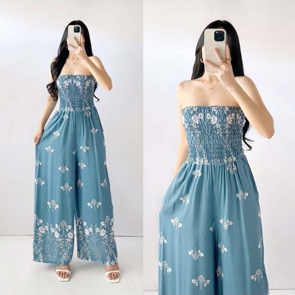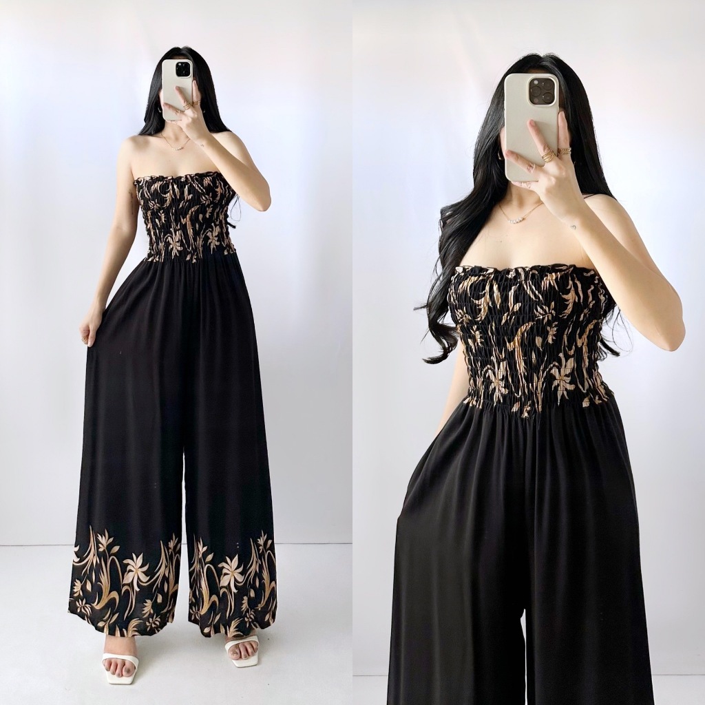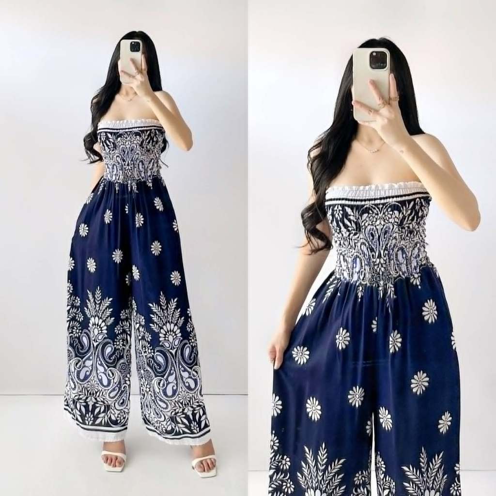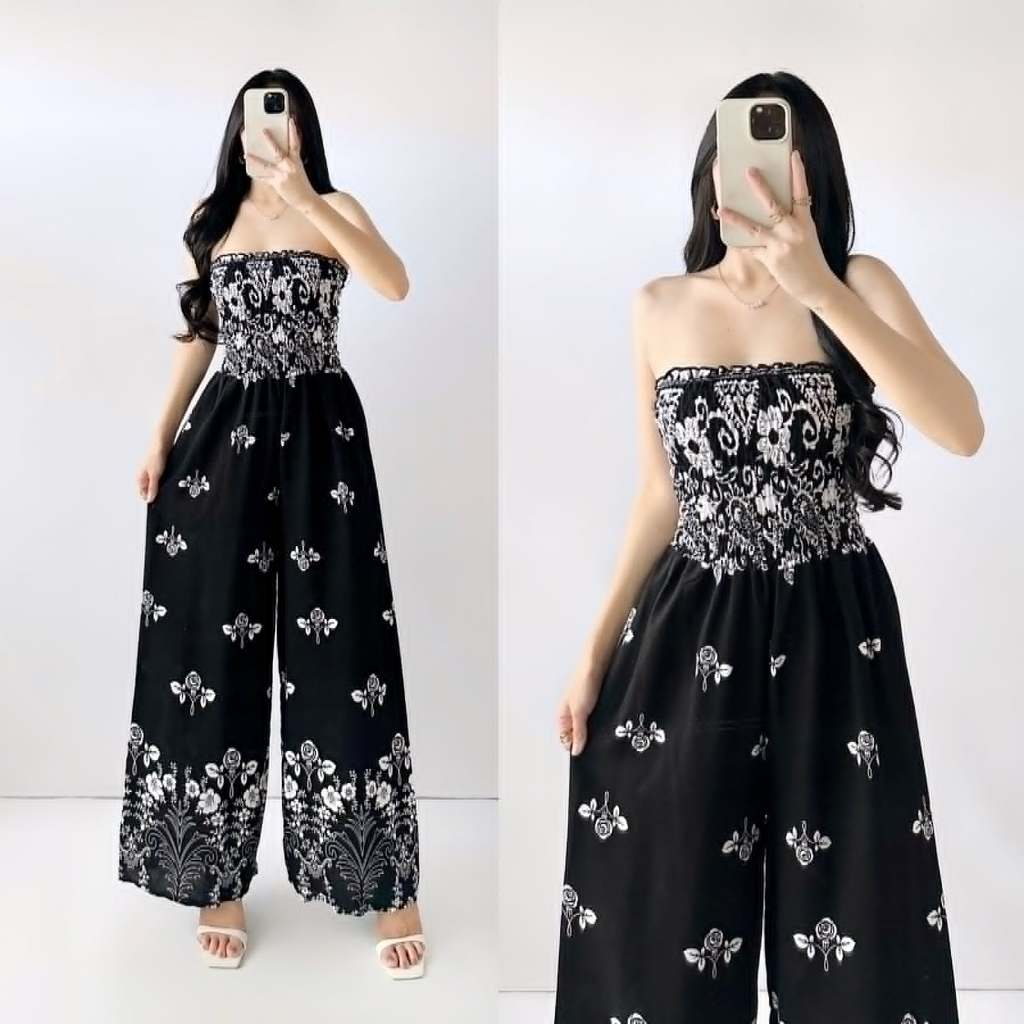 Casual Plain & Printed Smocking Jumpsuit Womenswear | DA&ABOUT THE FIT (Zebby)