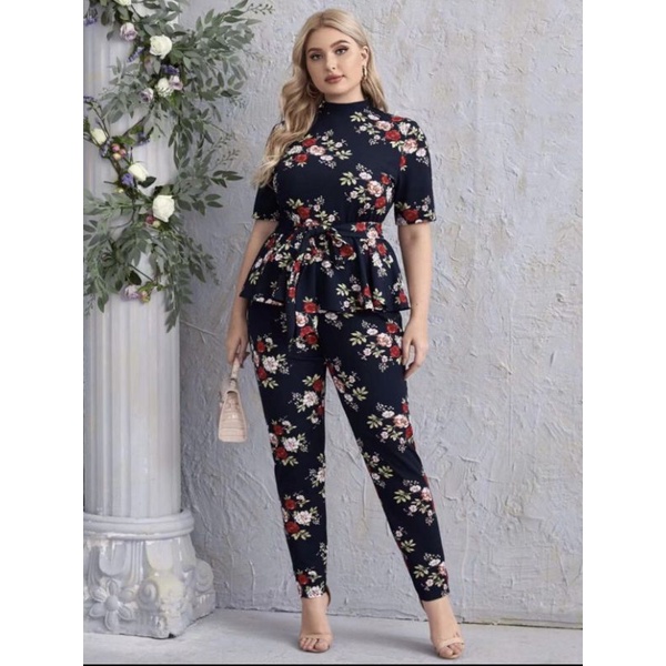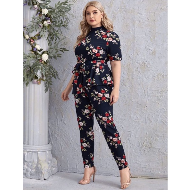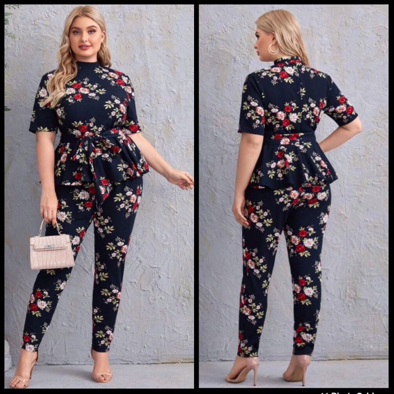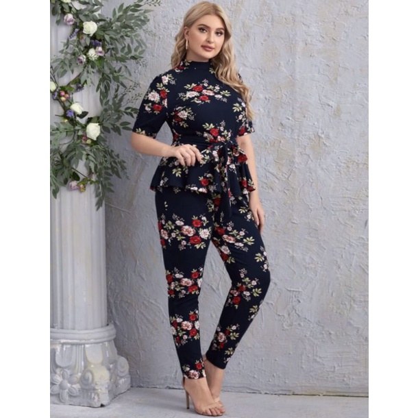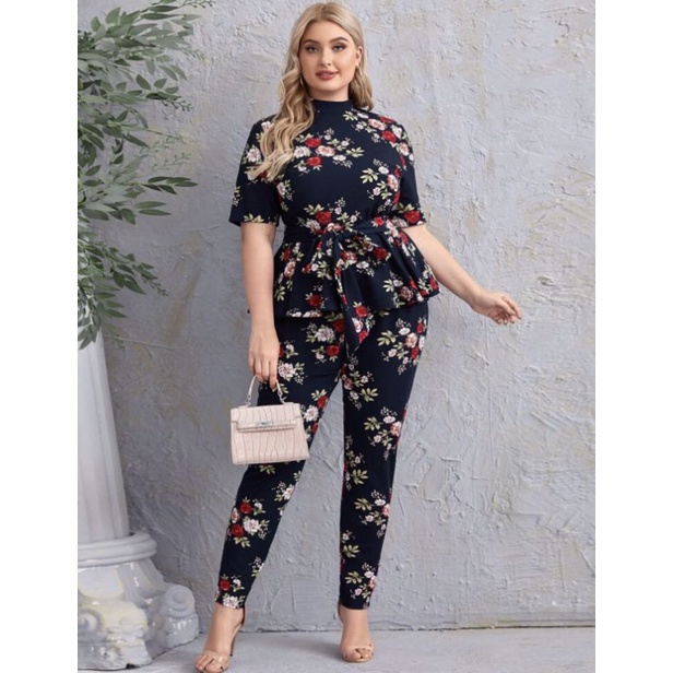 HQT FASHION ELEGANT PLUS SIZE TURTLE NECK FLORAL TERNO