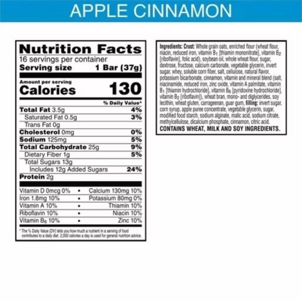 KELLOGG'S NUTIRI-GRAIN SOFT BAKED BREAKFAST BARS, APPLE CINNAMON, 1.3 OZ. USA IMPORT
