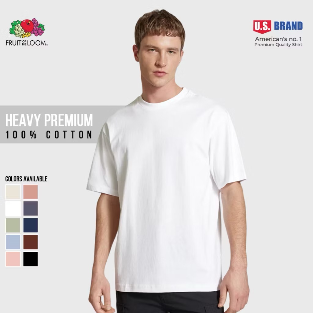 Fruit of the Loom Heavy Premium Tshirt for Men & Women 100% Cotton Men's Basic Plain Tee Casual Tops