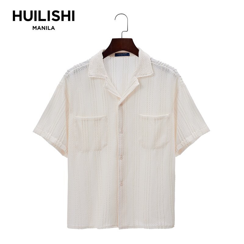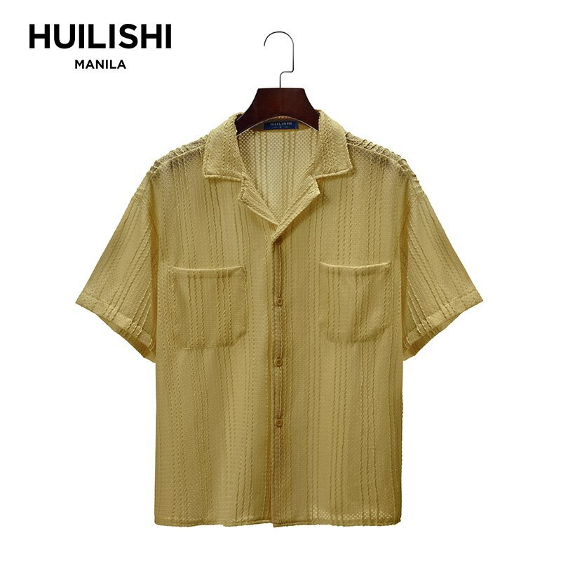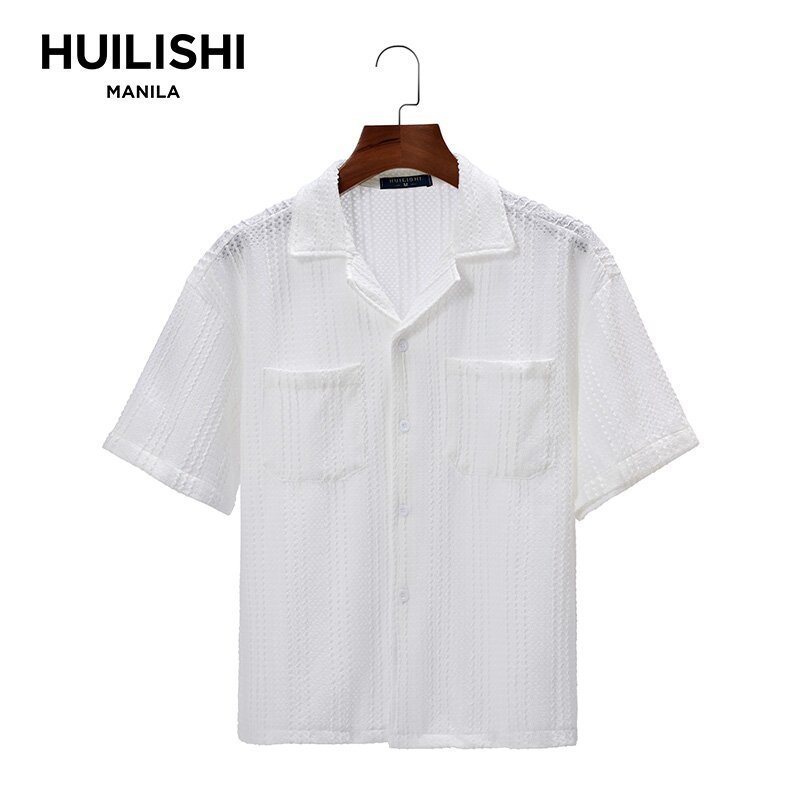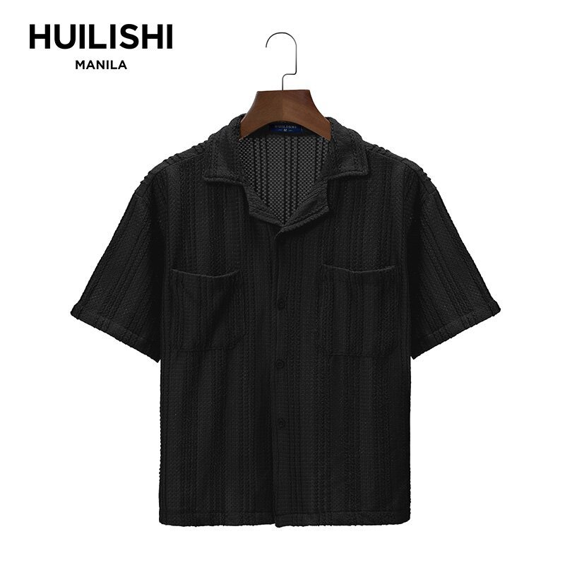 HUILISHI Box Fit Polo for Men Crop Top short-sleeved Cuban collar hollow fashion short wide-fit me
