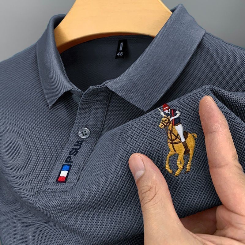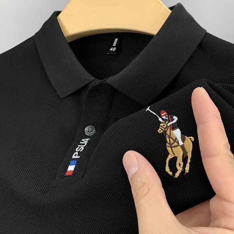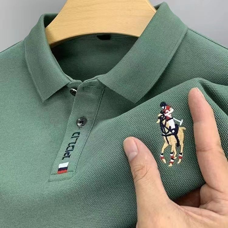 Men's Polo Shirt Solid Color Embroidered Lapel Plus Size Half Sleeve Shirt Men Top