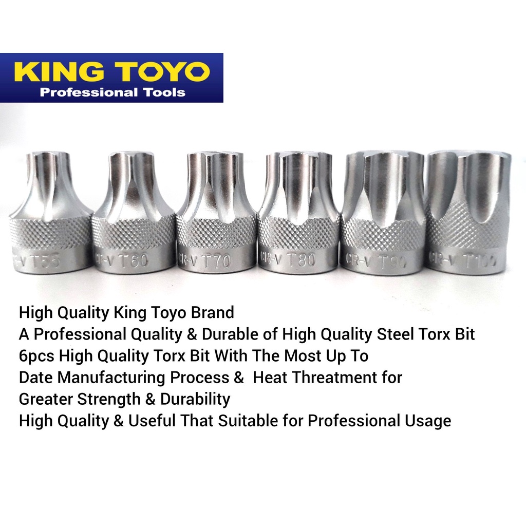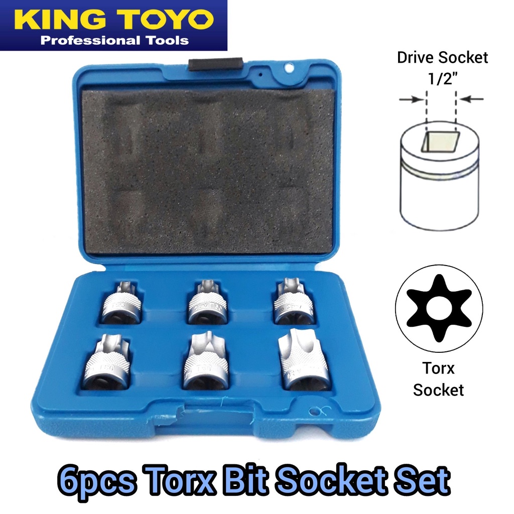 KING TOYO KT-4006TH 6pcs 1/2″ Dr. Torx Bit Socket Set