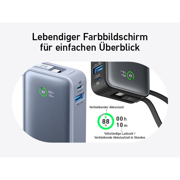 Anker Nano 10K Portable Power Bank With Built-In USB-C Cable (30W) A1259