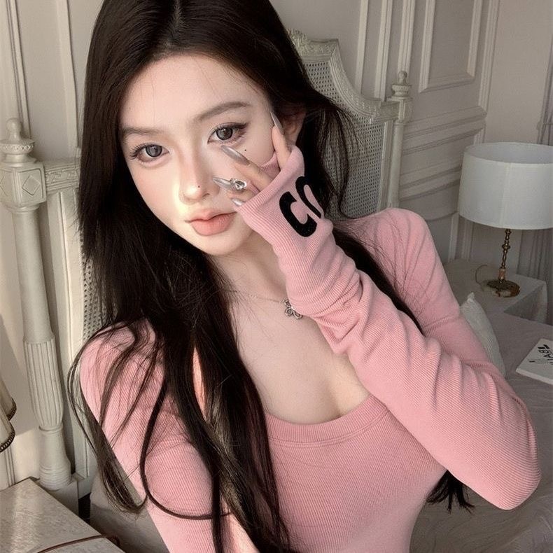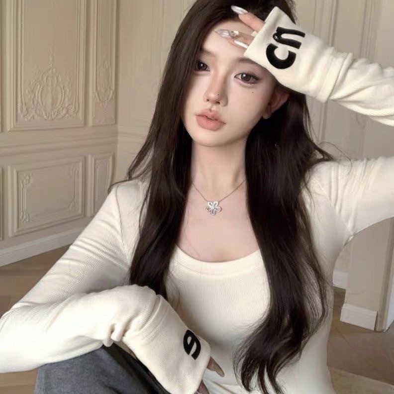 Korean letter long sleeved T-shirt for women slimming top