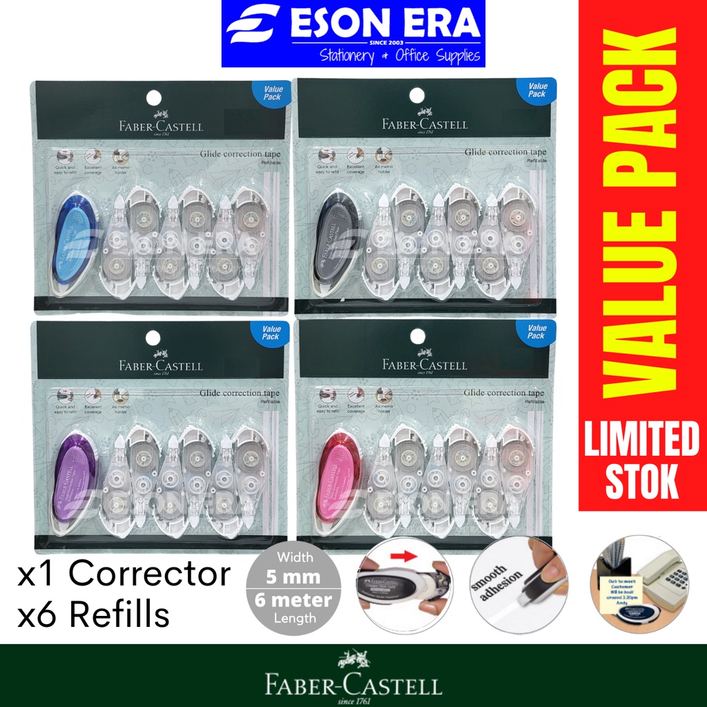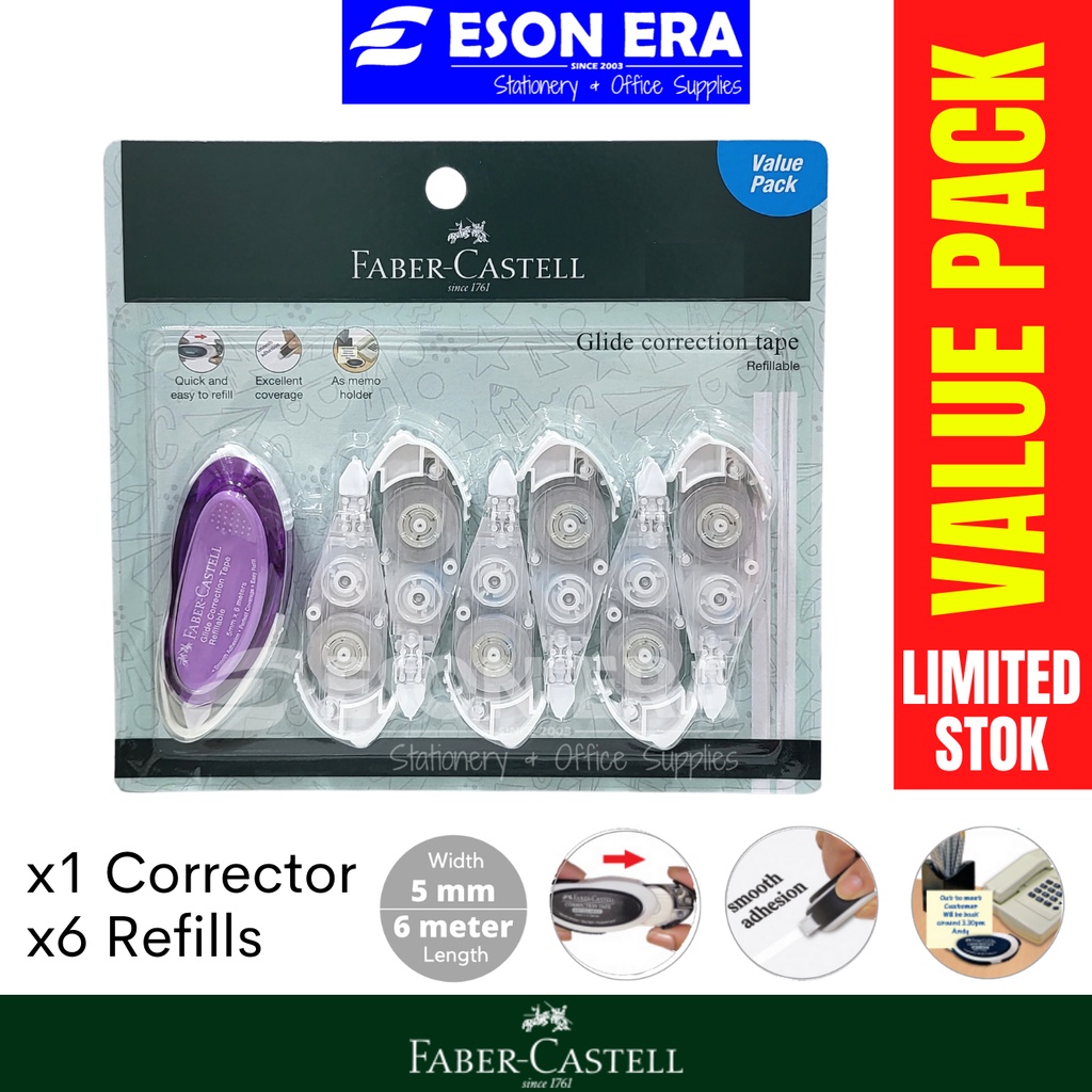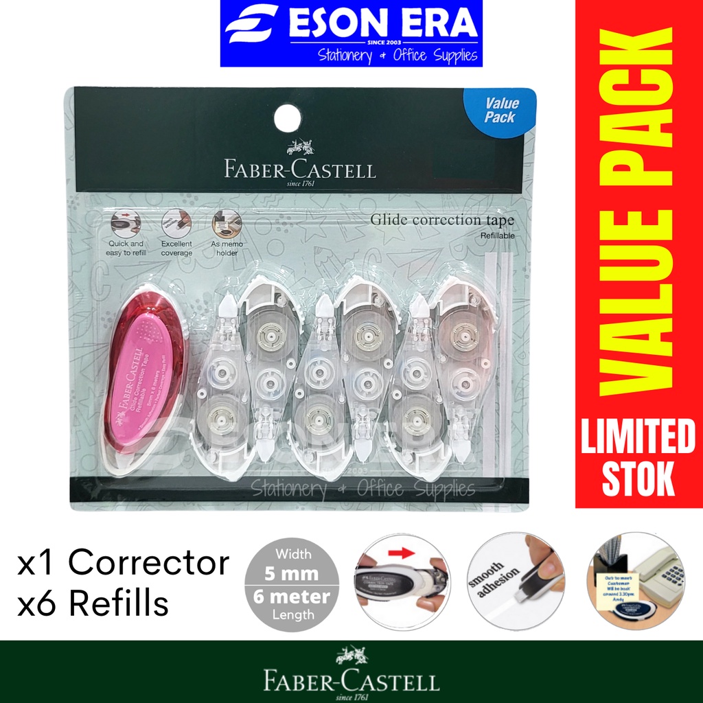 Faber-Castell Correction Tape Glide Value Pack 1 Corrector+6 Refills 169111