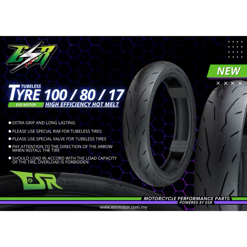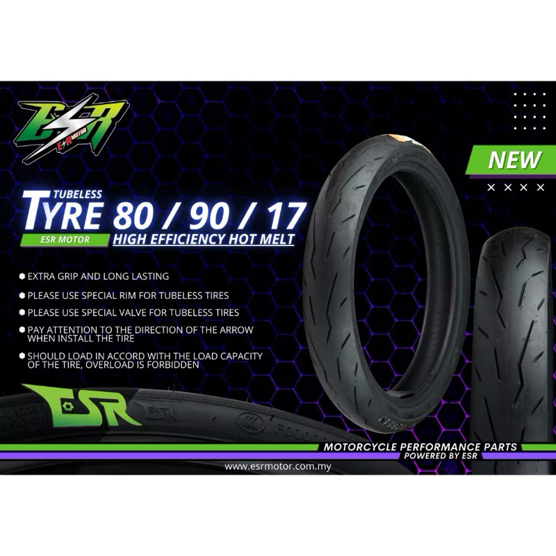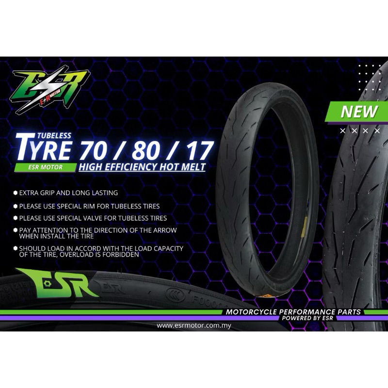 ESR TAYAR TYRE TUBELESS 17 INCH 60/90 70/80 70/90 80/80 80/90 90/80 100/80 110/70 120/70 100% ORIGINAL ESR TAYAR