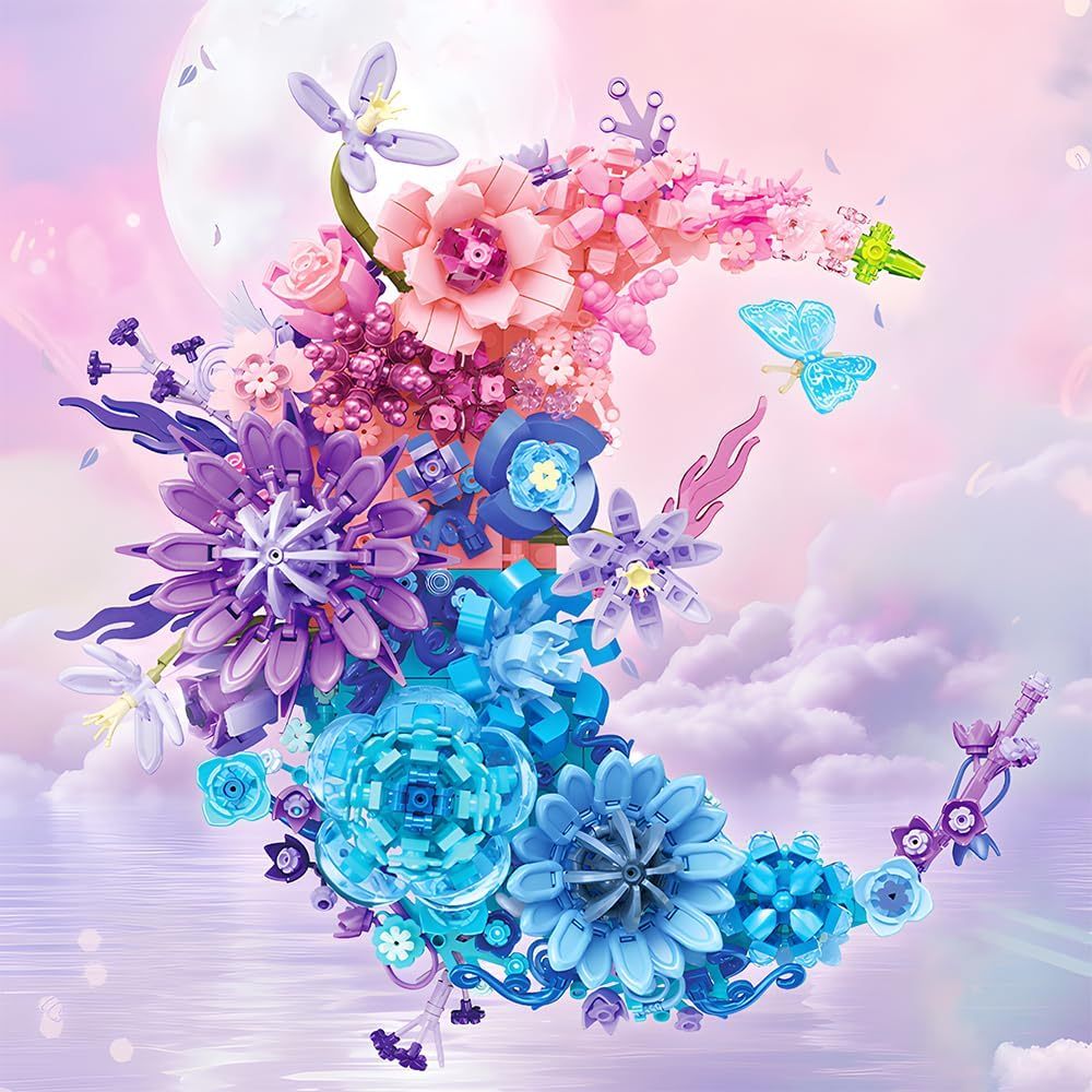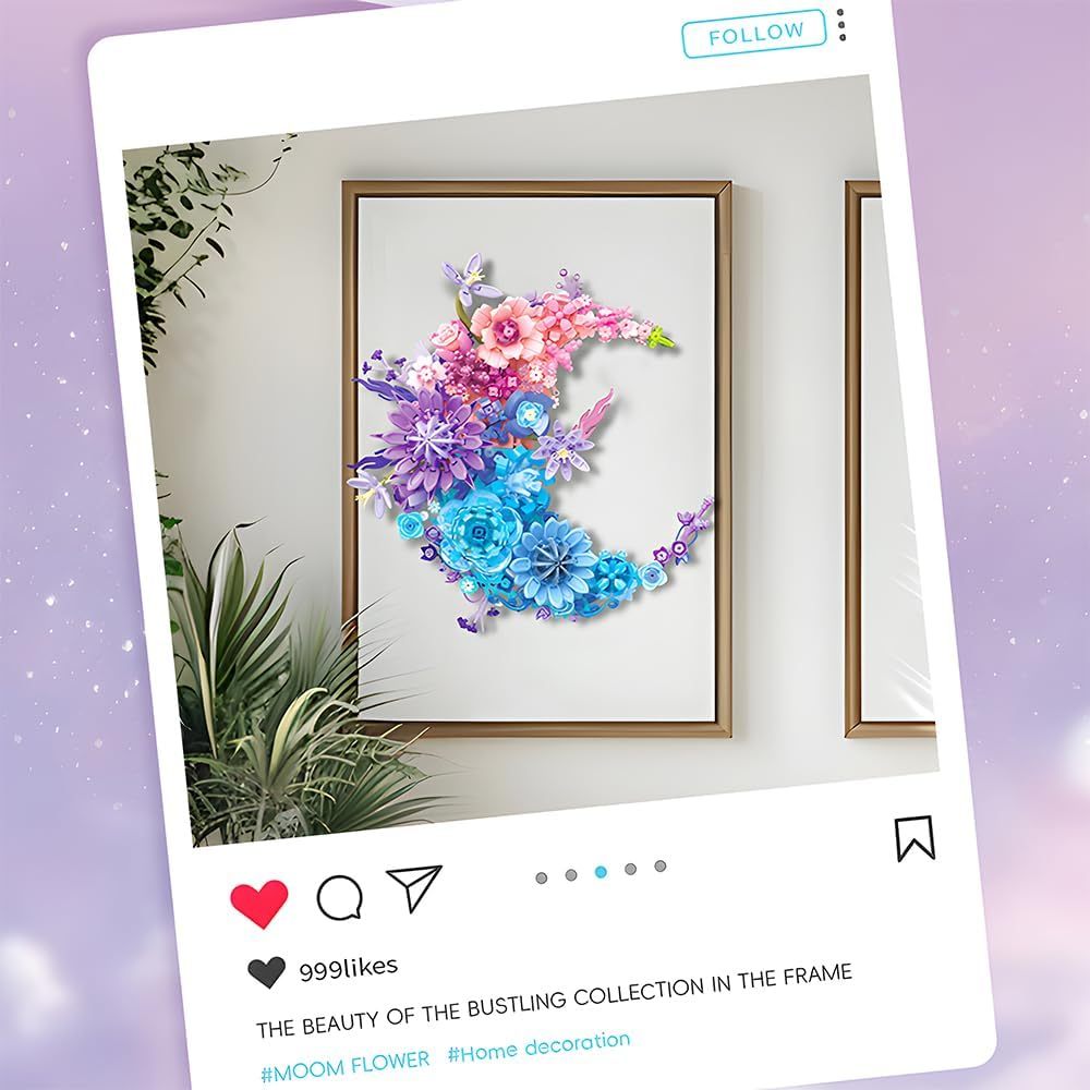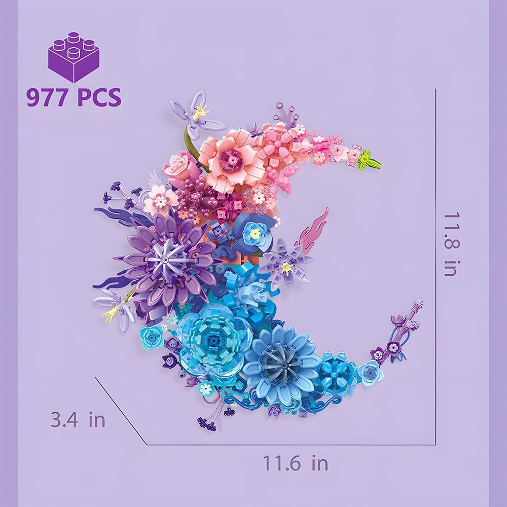 Moon Flower Building Set (977PCS) Toy for Kids Adults Roses Plants Botanical Collection Creative Building Toy 3D Wall Home Office Room Decor Dried Flower Love Valentine's Day Birth