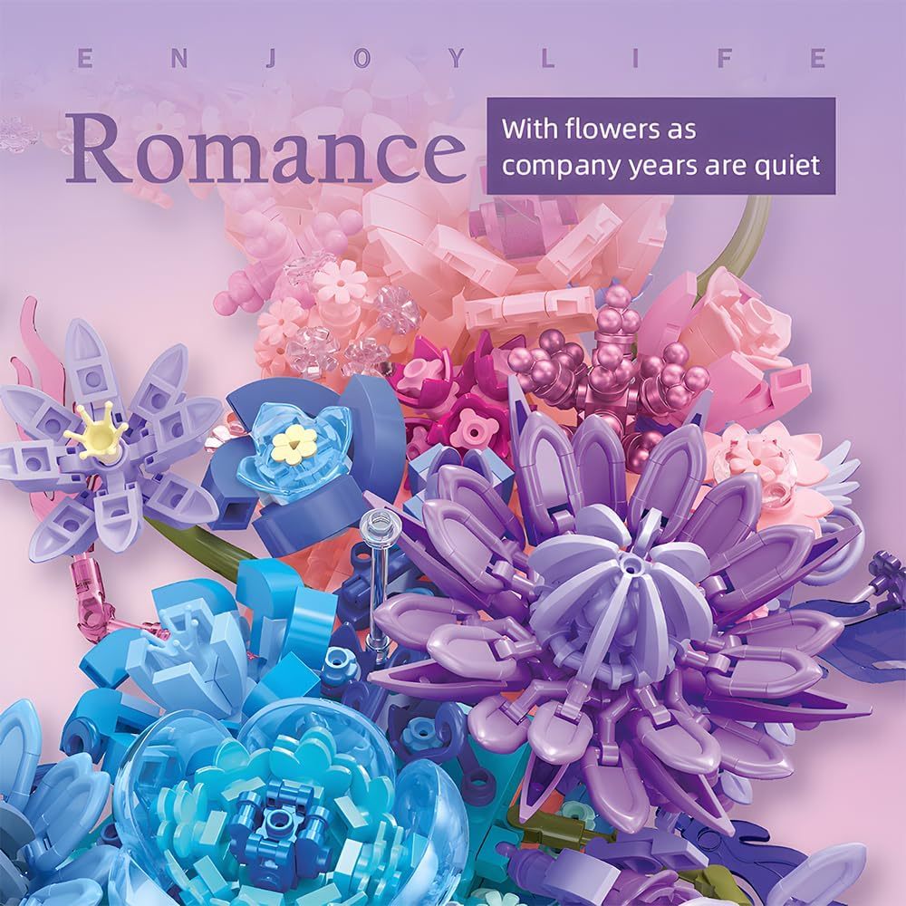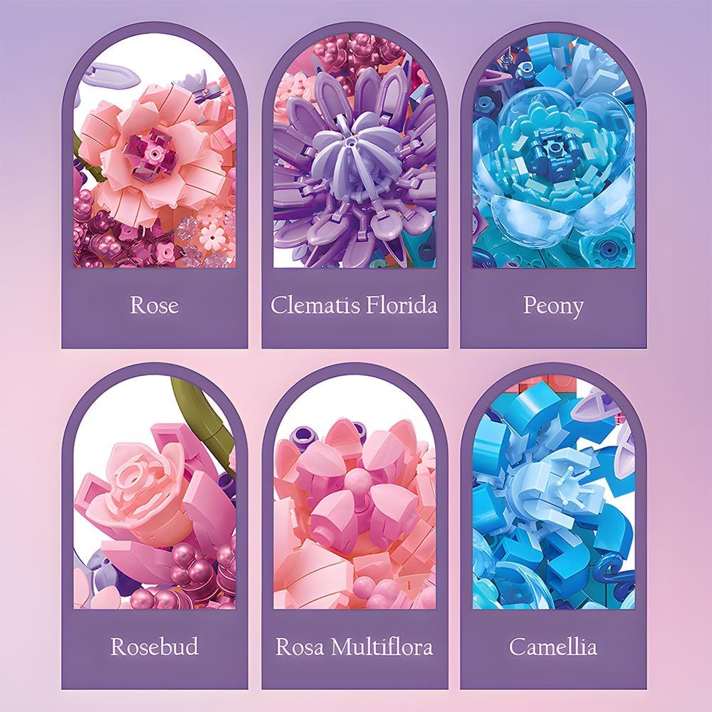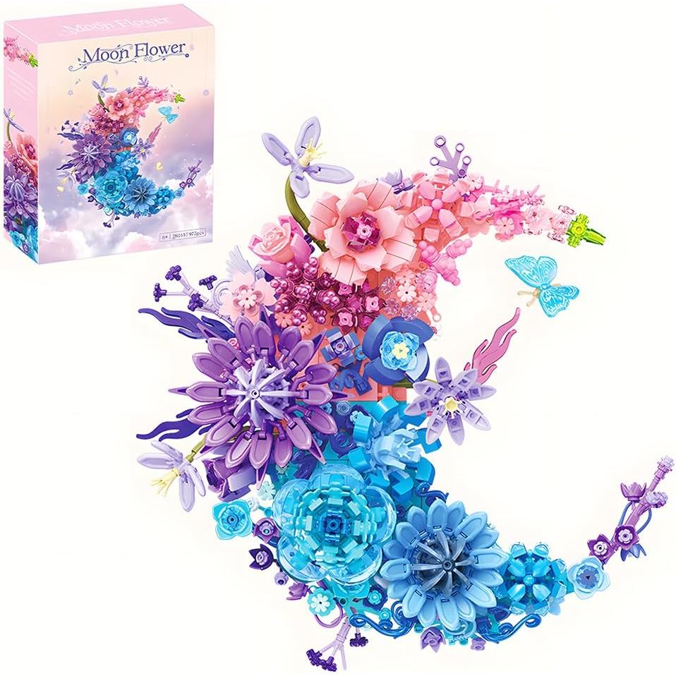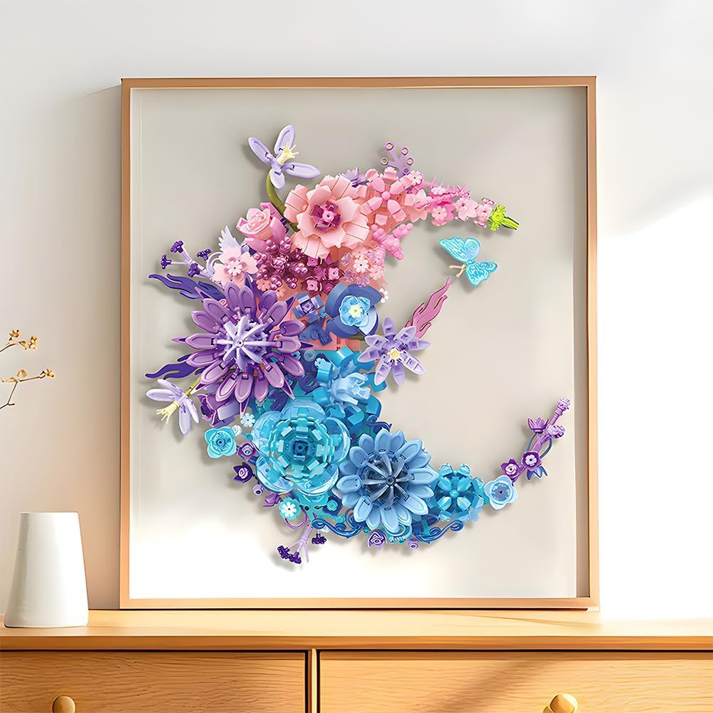 Moon Flower Building Set (977PCS) Toy for Kids Adults Roses Plants Botanical Collection Creative Building Toy 3D Wall Home Office Room Decor Dried Flower Love Valentine's Day Birth