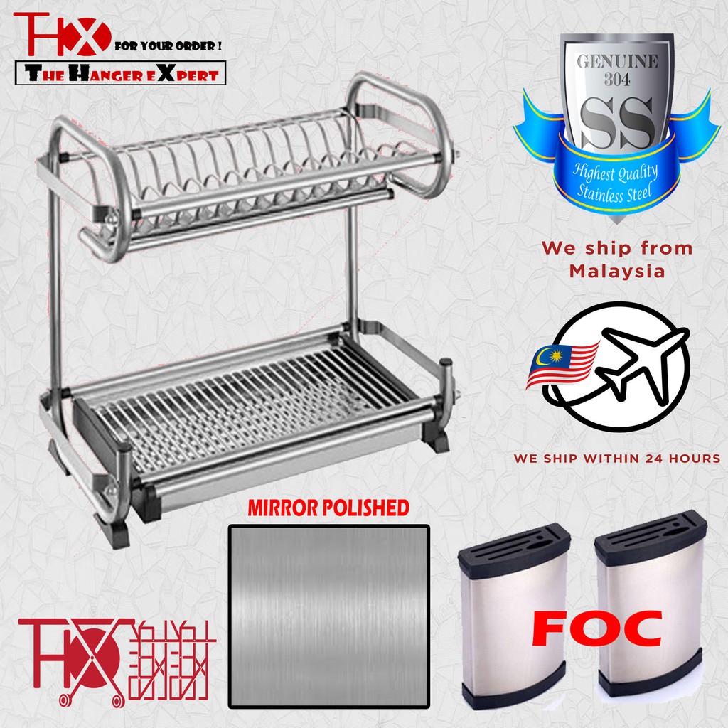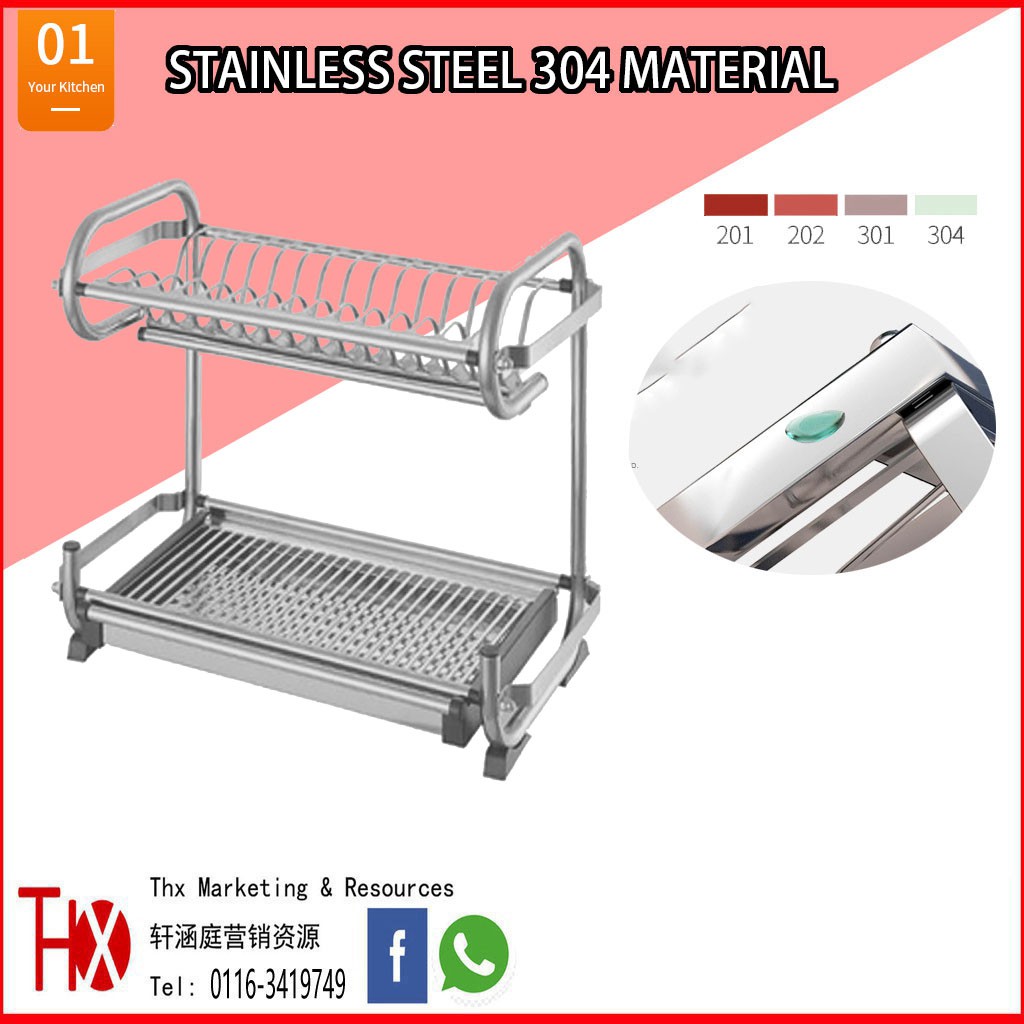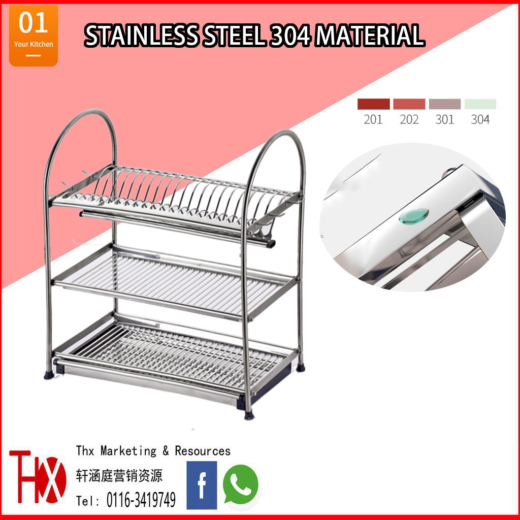 Stainless Steel SUS 304 Grade Thx High Quality 2 & 3 Tier Dish Rack Big Size 2 Tier Wall Type Multi Purpose