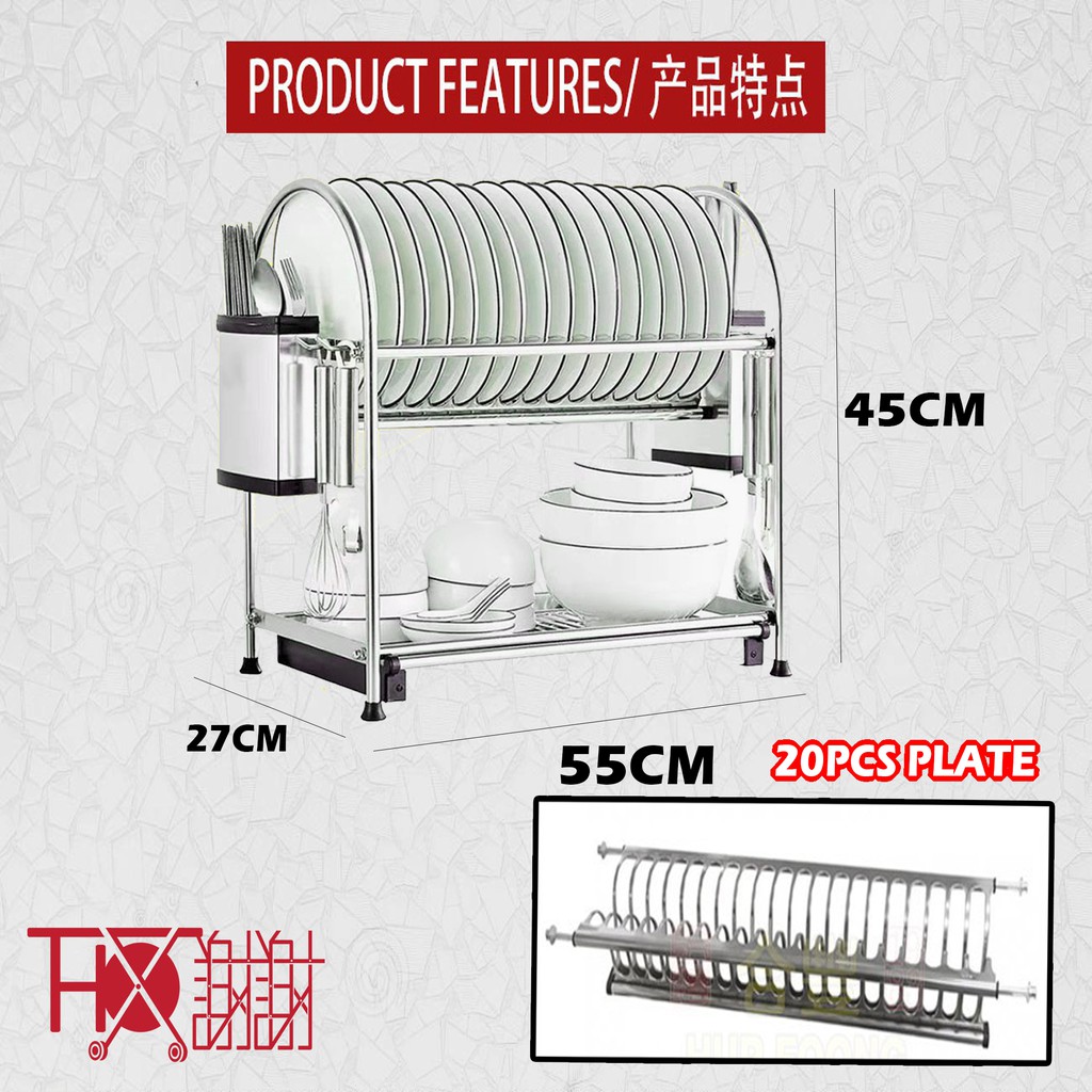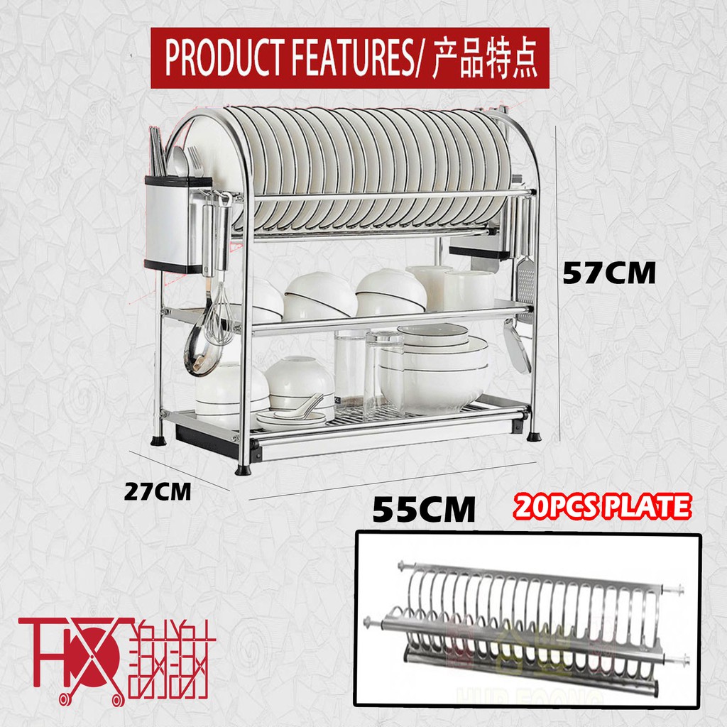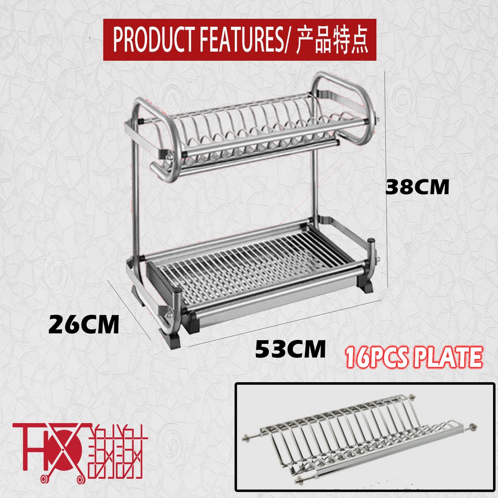 Stainless Steel SUS 304 Grade Thx High Quality 2 & 3 Tier Dish Rack Big Size 2 Tier Wall Type Multi Purpose