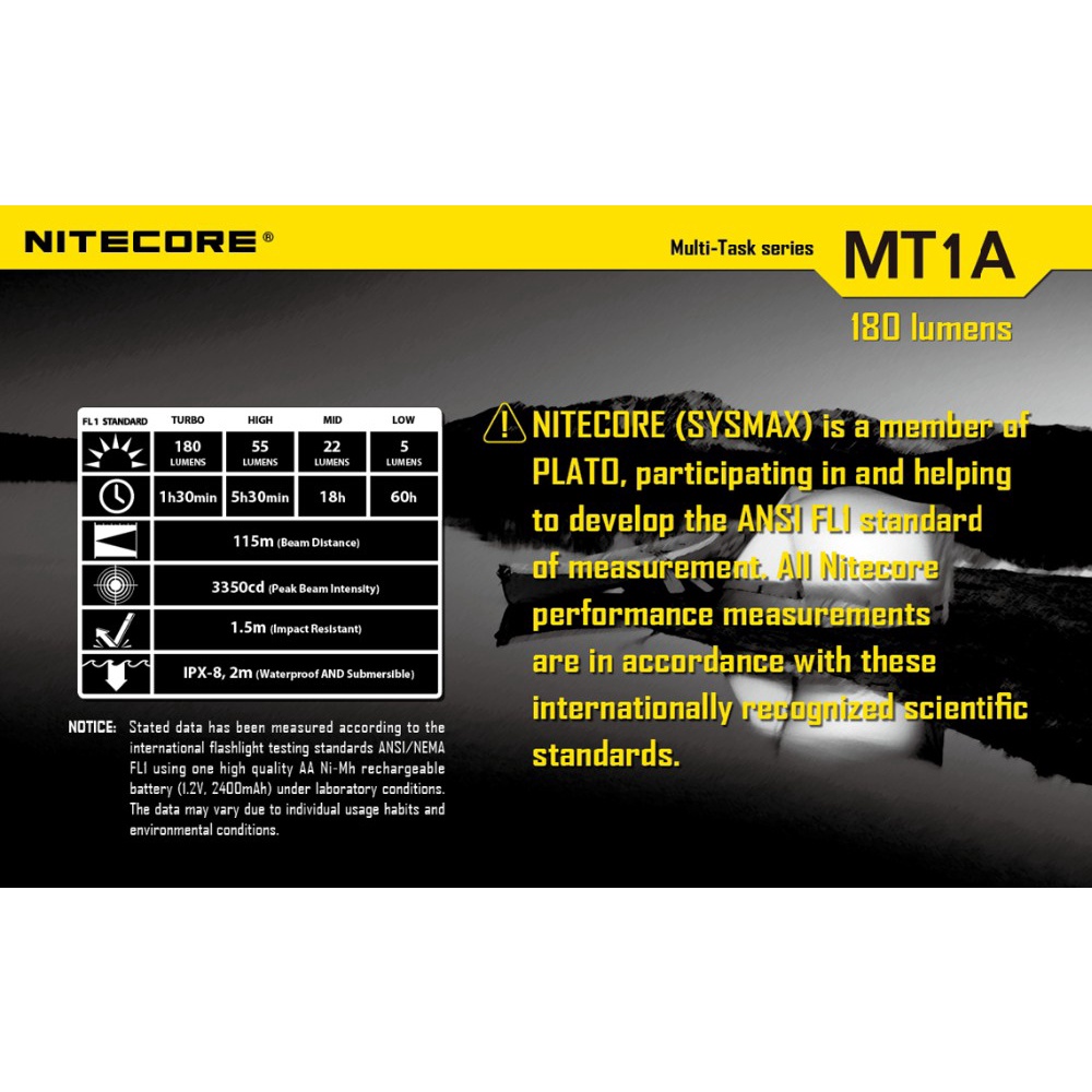 NITECORE MT1A LED 180 Lumens Torch Flashlight