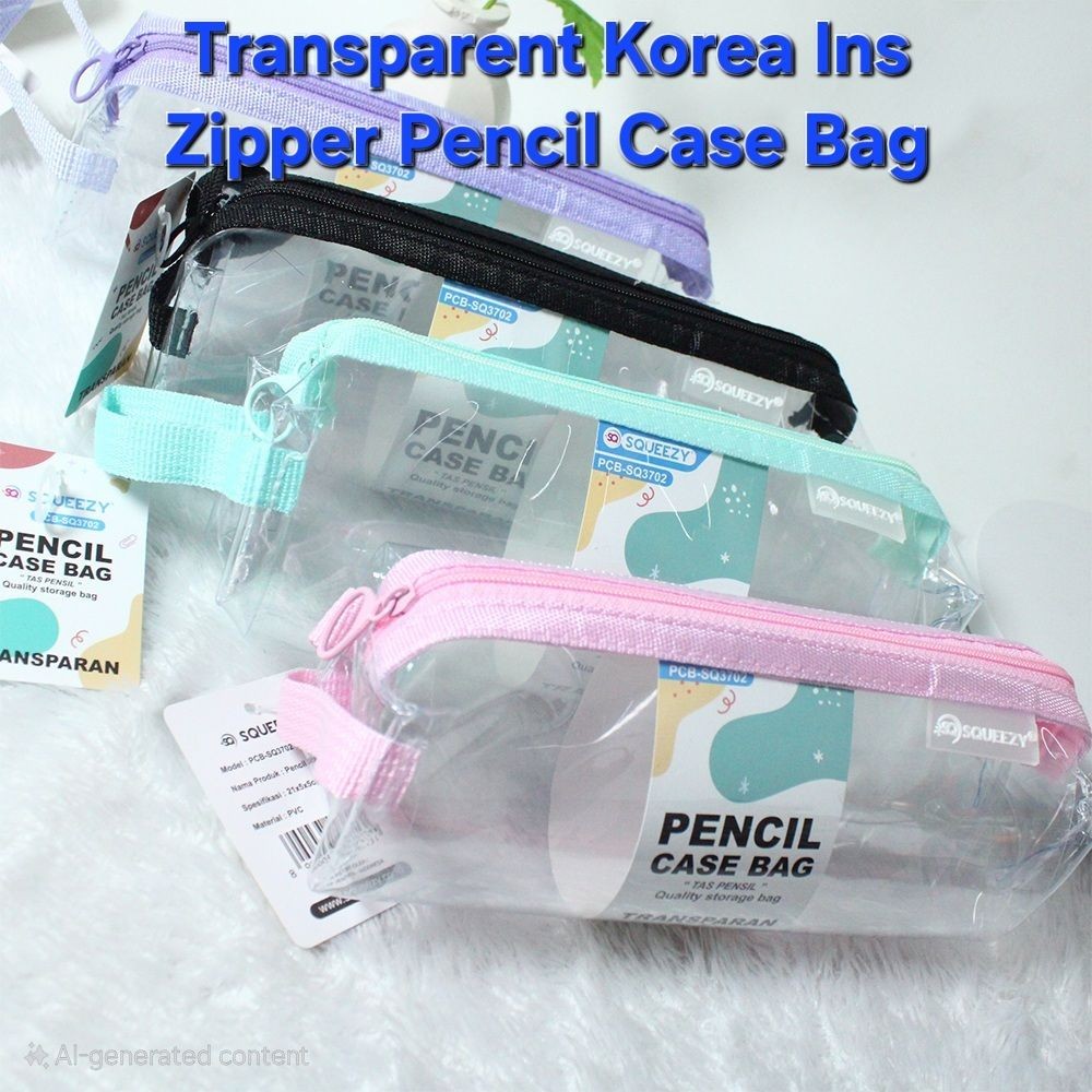 Large Pencil Case Big Capacity Zipper Pencil Bag Transparent Portable Korea Ins Style