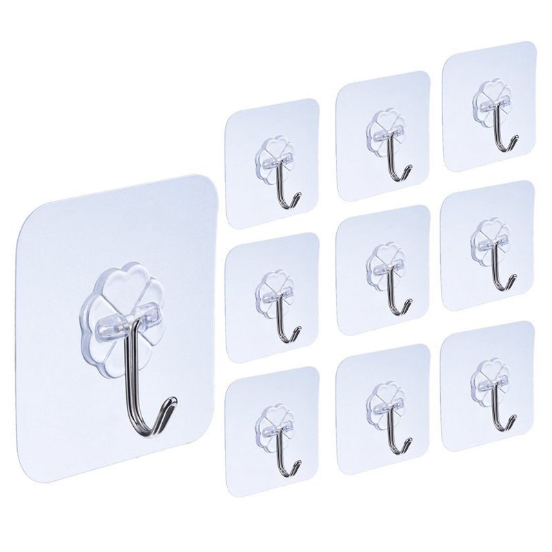 10 Packs Reusable Adhesive Hooks,Transparent Heavy Duty Wall Hooks