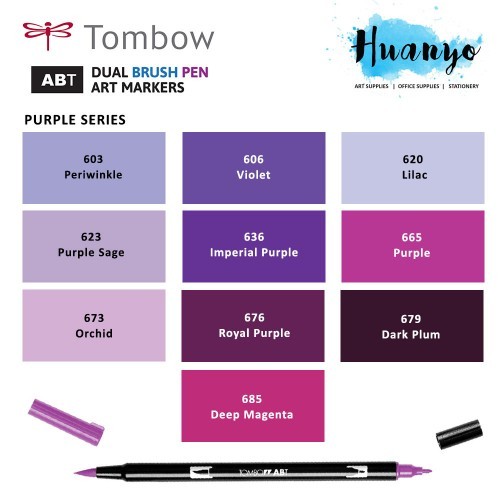Tombow ABT Dual Tips Drawing & Calligraphy Brush Pen - Purple Shades (10 Colours, Per PCS)