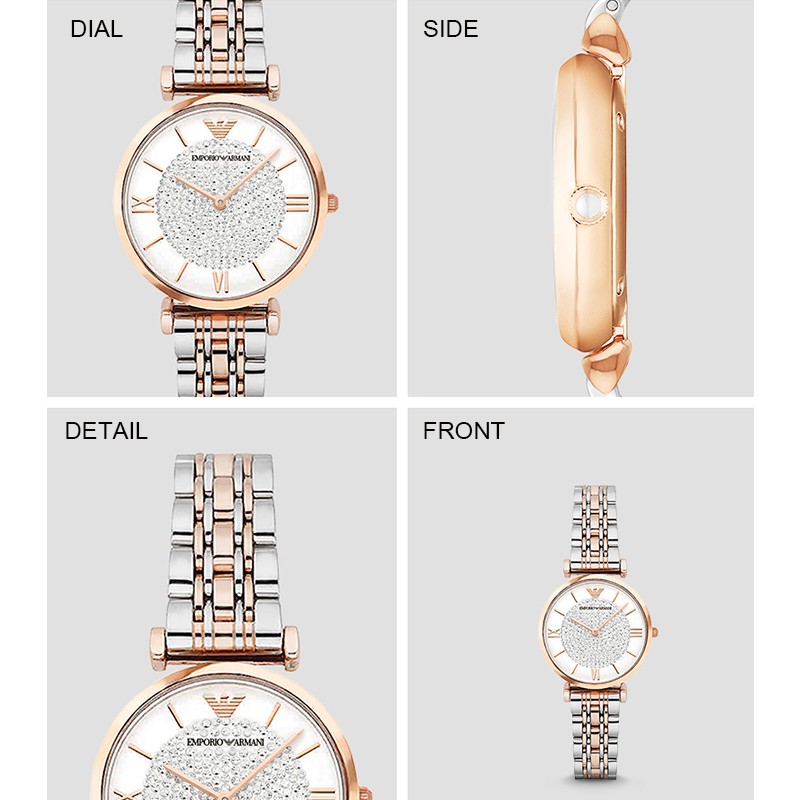 AR1926 Gold Tone White Crystal Pave Dial Ladies Wrist Watch New Emporio Armani