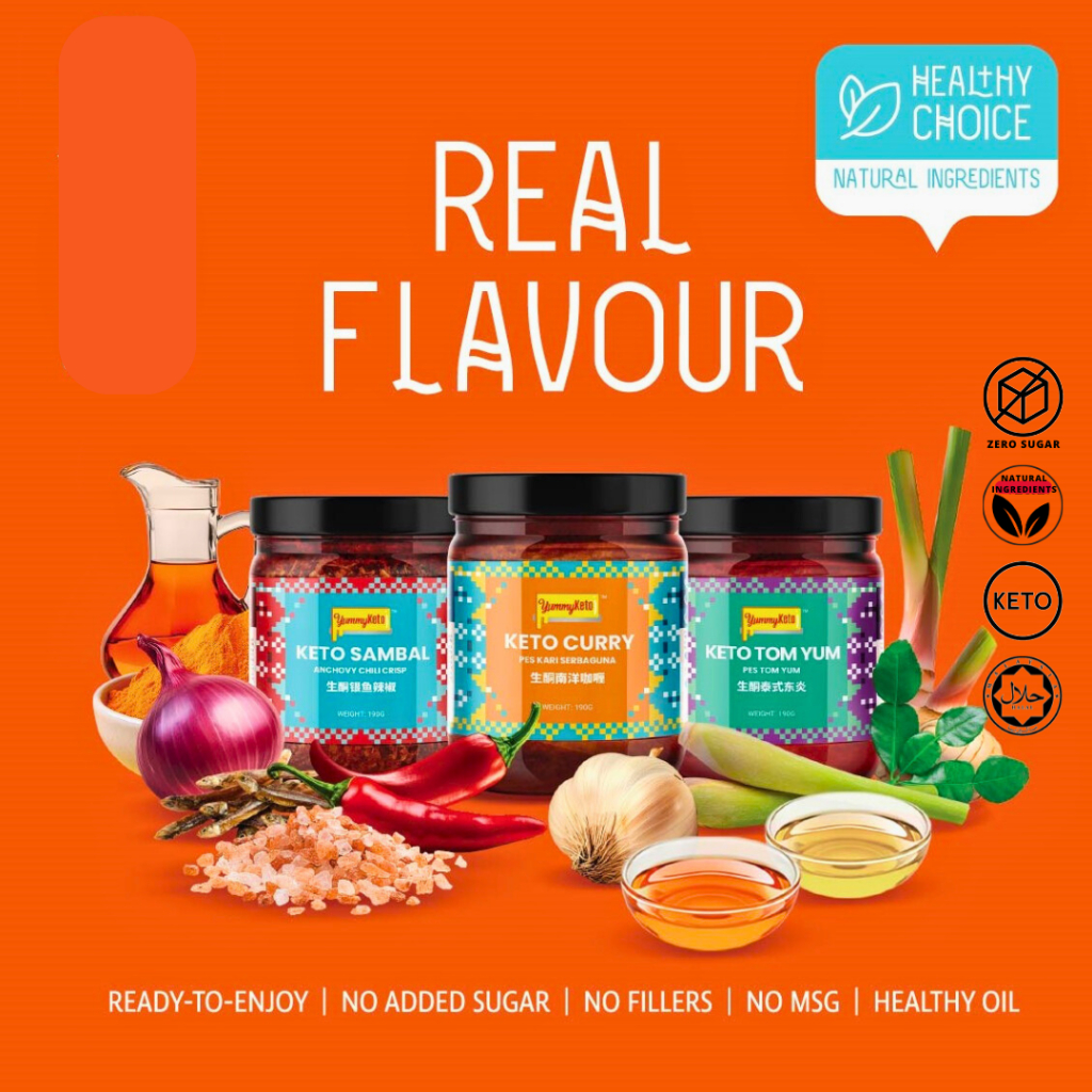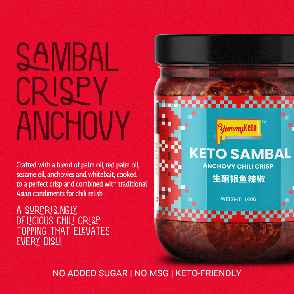 YUMMYKETO Sambal Crispy Anchovy Sugar Free No MSG Ready-To-Eat Keto [Halal] Sambal Tanpa Gula