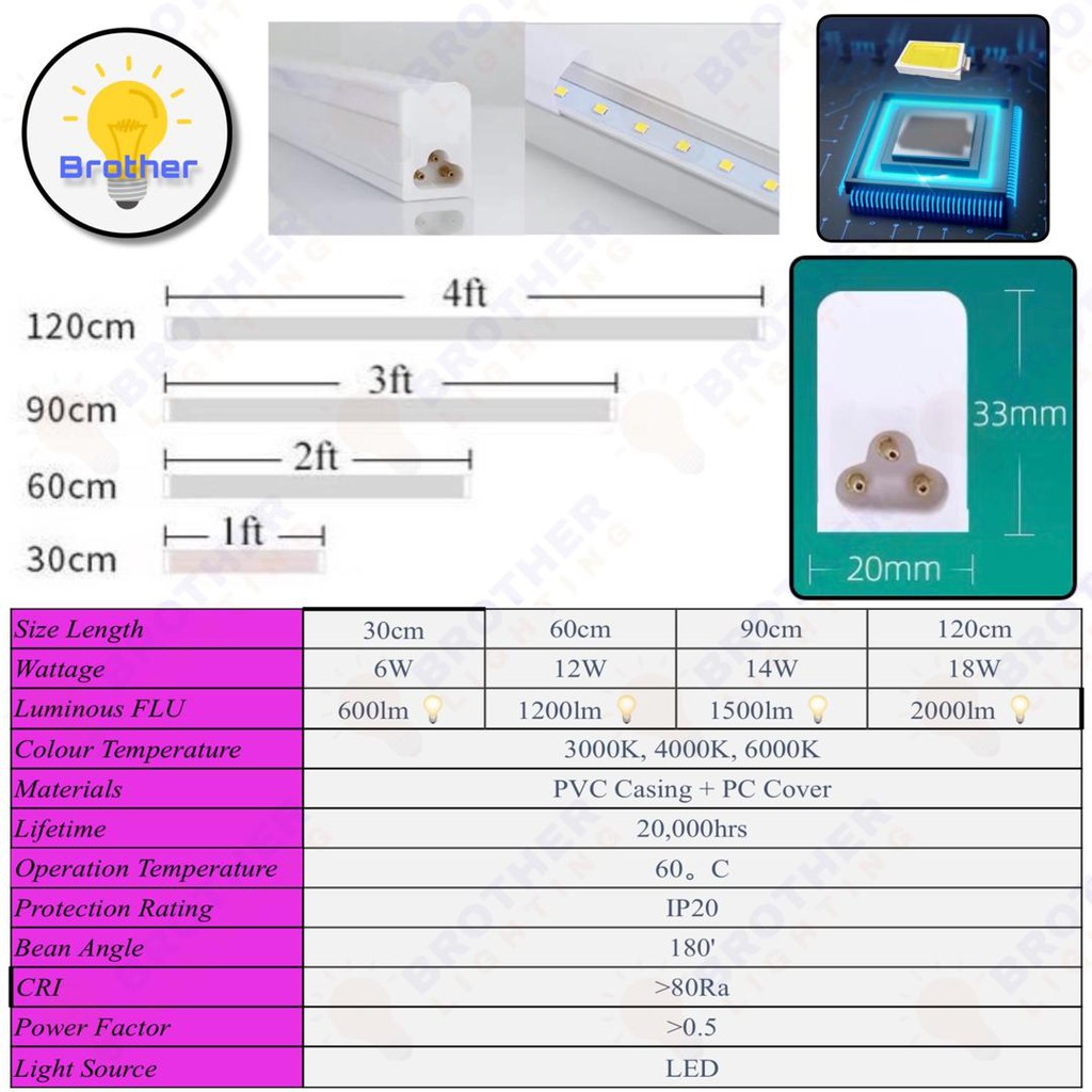 [SIRIM] Premium IMITOS 3 Colour LED T5 Tube Light Lamp Bulb Set Celling Light Energy saving Long Tube 1ft/ 2ft/ 3ft/ 4ft