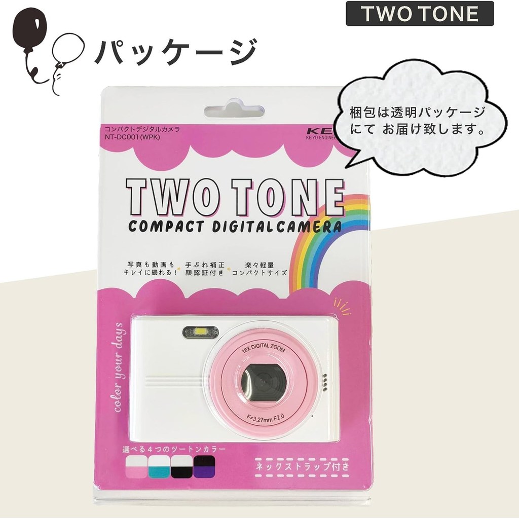 [Brand New, Japanese Quality] Cute Two-Tone Compact Digital Camera | 44MP, Full HD Video | Lightweight 104g | White x Pink | KEIYO NT-DC001