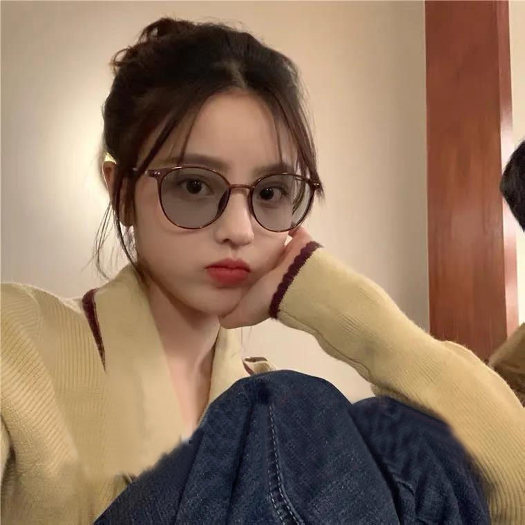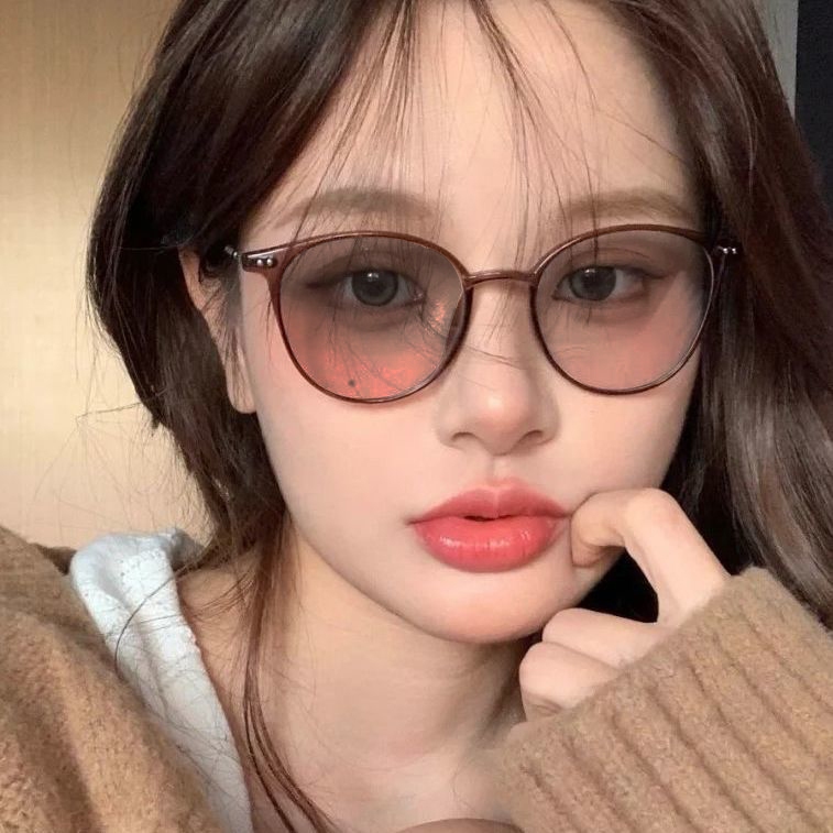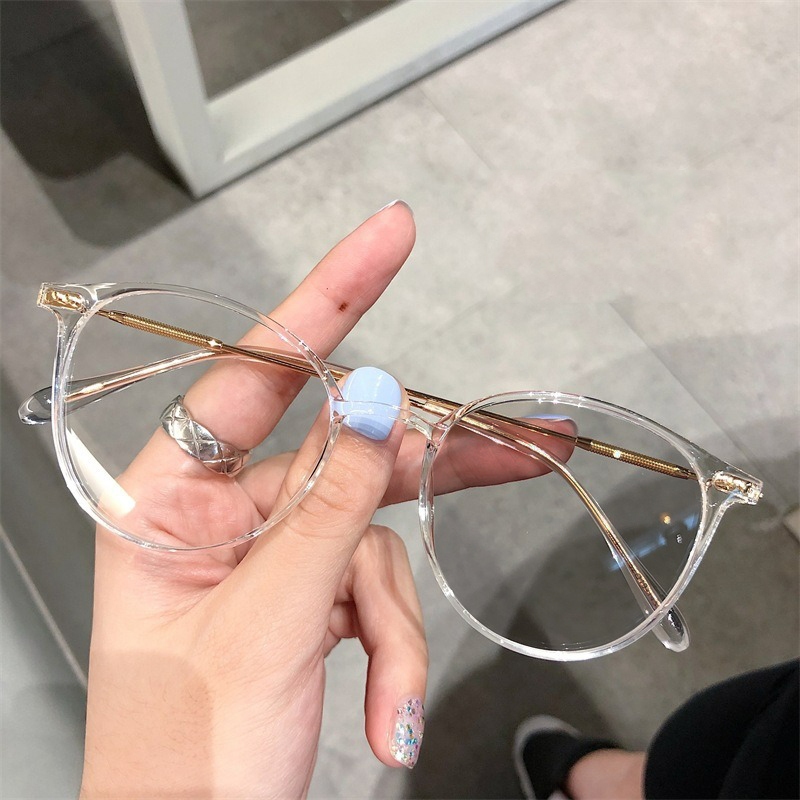 【READY STOCK】High-End Women's Photochromic Glasses Stylish Round Frame Anti-Blue Light Glasses Unisex Spek Mata