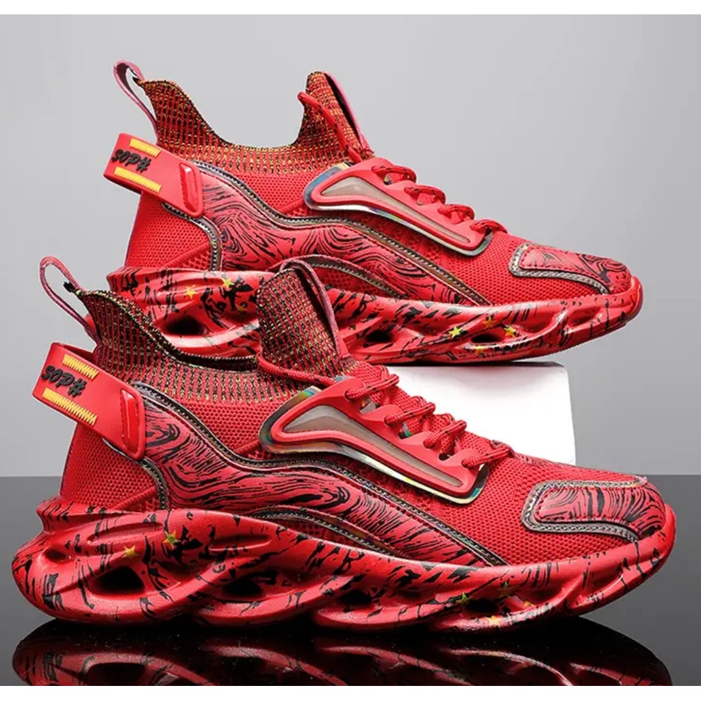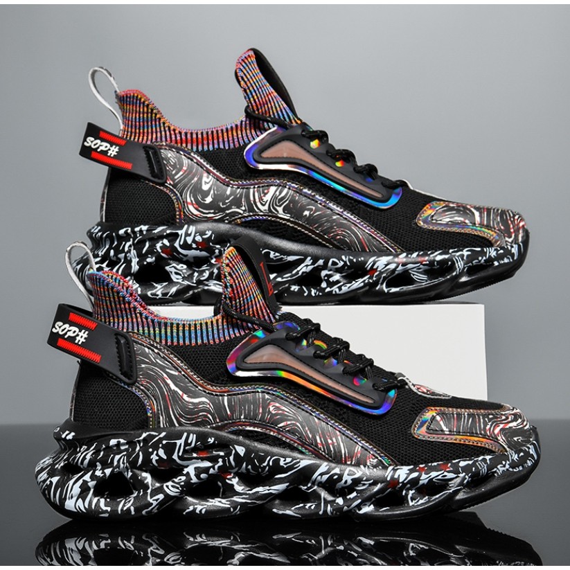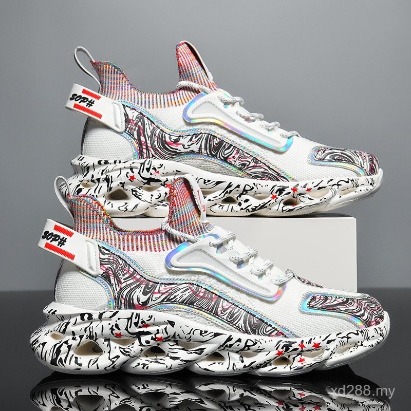 New Hot-selling Large Size Blade Men's Shoes Mesh Graffiti Sneakers National Trendy Twist Sole Running Shoes 0622