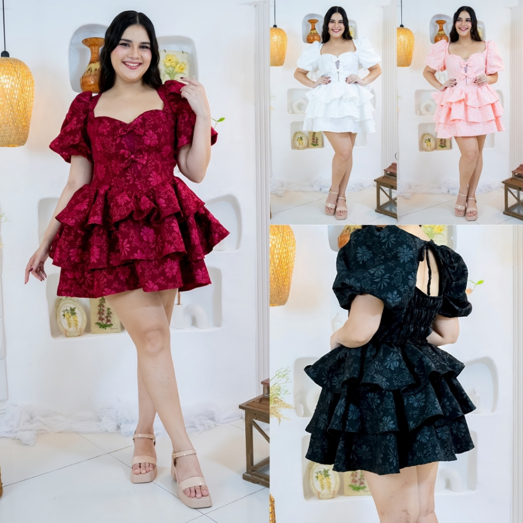 PLUS SIZE FLORABELLE LAYERED MINI DRESS WITH 2 RIBBON XL-2XL BY TAYTAYSIGNATURE FLORAL DRESS