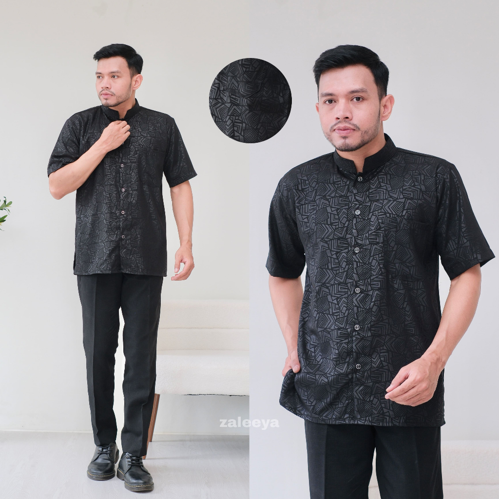 KEMEJA Zaleeya – Haidar Shirt Men's Basic Embossed Forzaleta Premium Short Sleeve Shirt