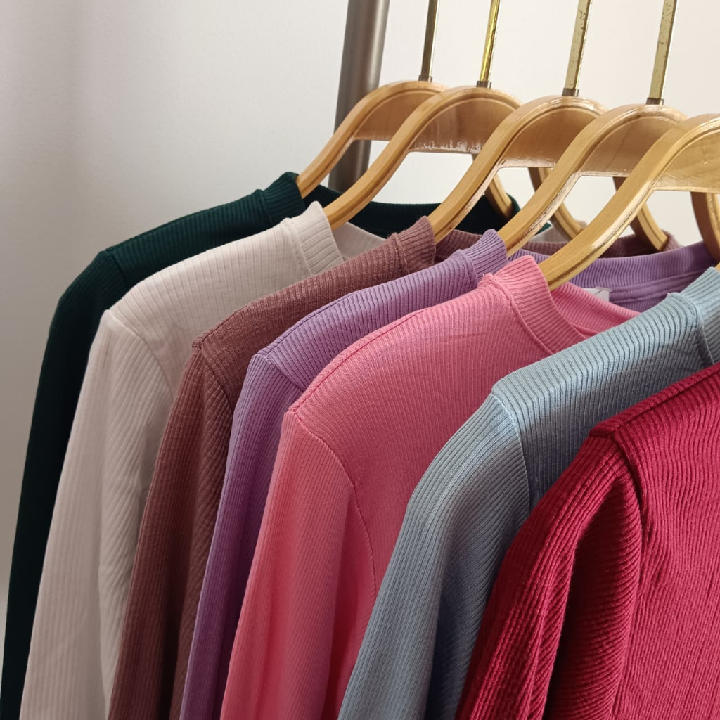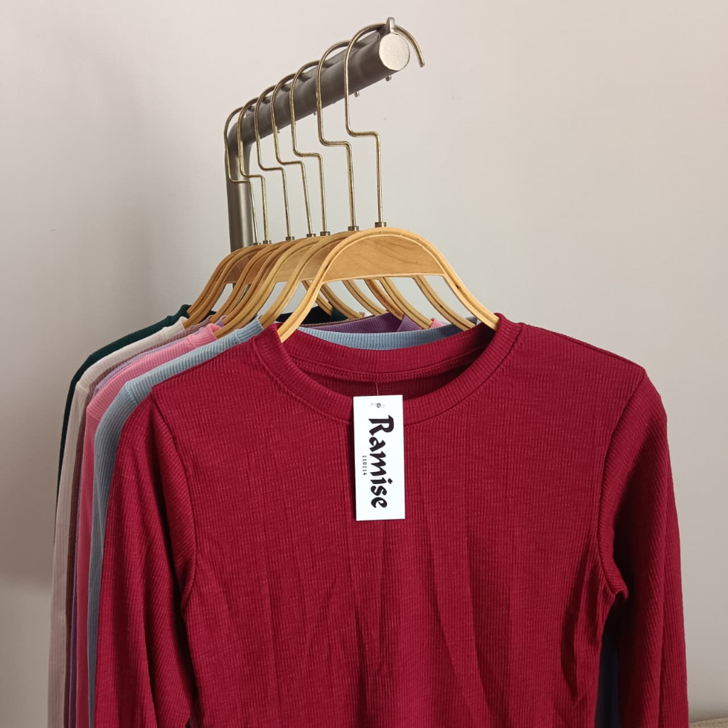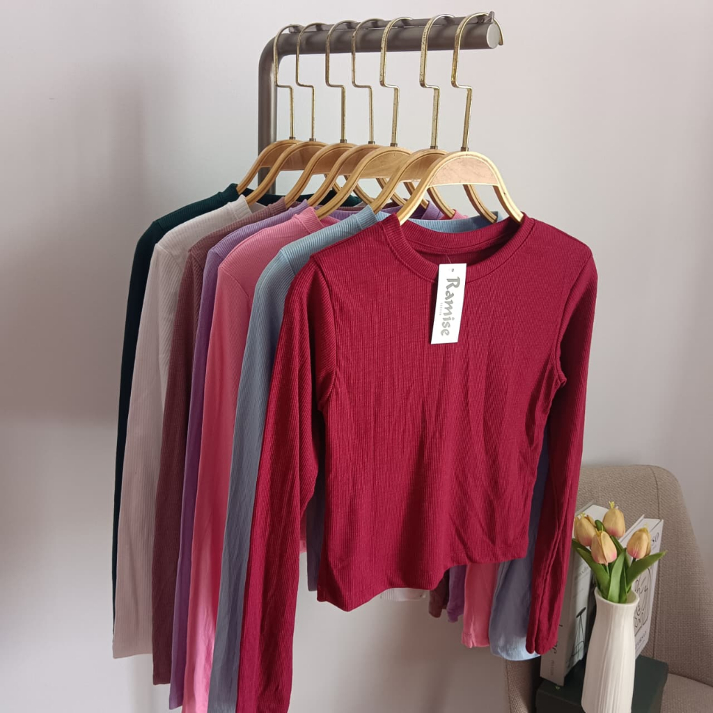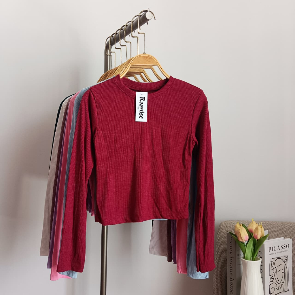 Plain Long Sleeve Knit T-Shirt Women's Press Body T-Shirt/ Ramise/