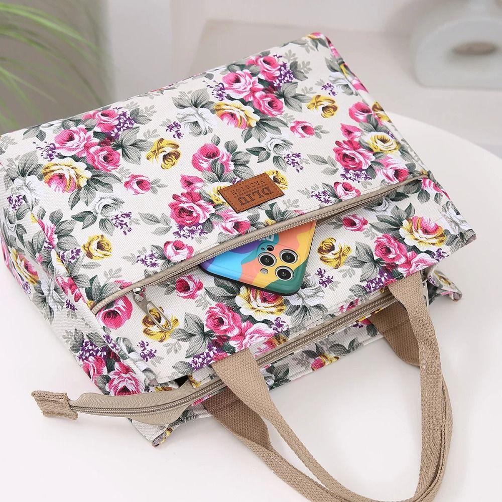 ROXUL Floral Print Tote Bag, Ethnic Style Fashion Canvas Lunch Bag, Portable Mommy Bag Picnic Travel Casual Handbag