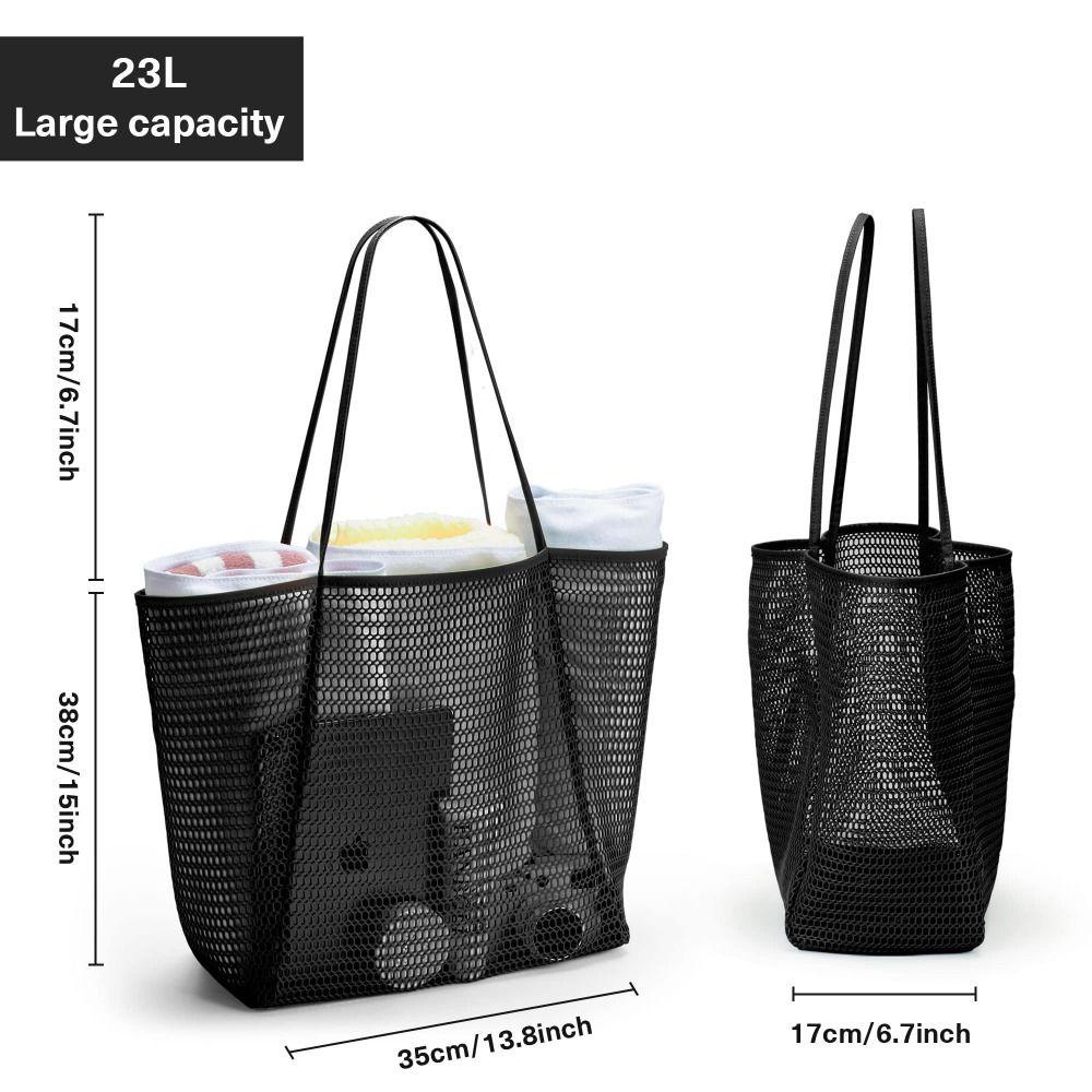 GESH Mesh Tote Bag, Large Capacity Nylon Beach Handbags, Black Khaki Pink Lightweight Storage Accessories for Outdoor Travel