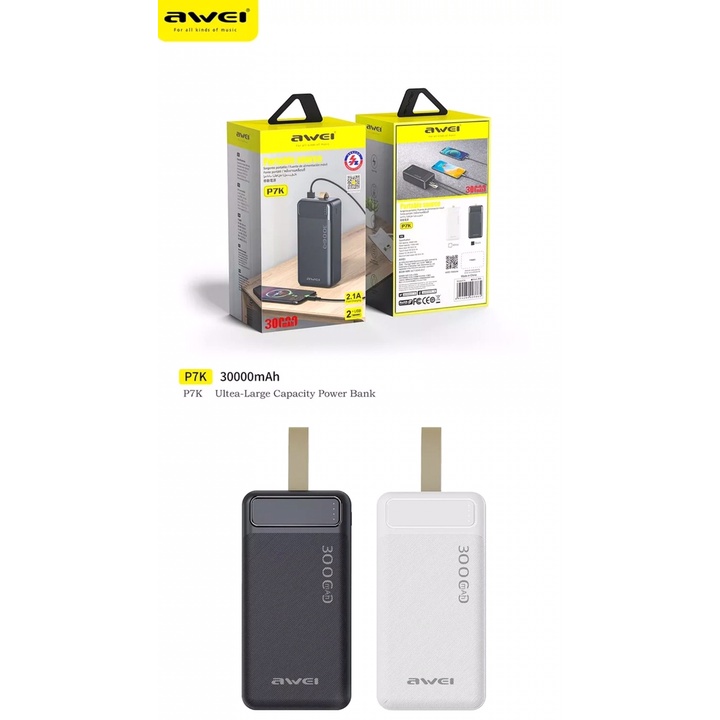 Awei Fast Charger P7K 30000mAh Portable Power Bank Dual Type A USB A and Type C Micro Dual Input Fast Charge