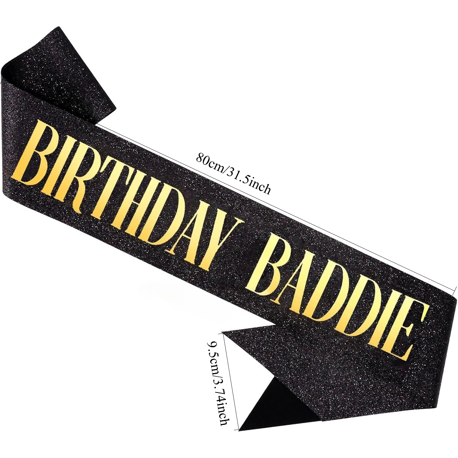Birthday Baddie”1 set Belt for women, Happy Fun Party Shoulder Strap Accessory sash, Celebration Gift Supply , birthday , crown ,decorations