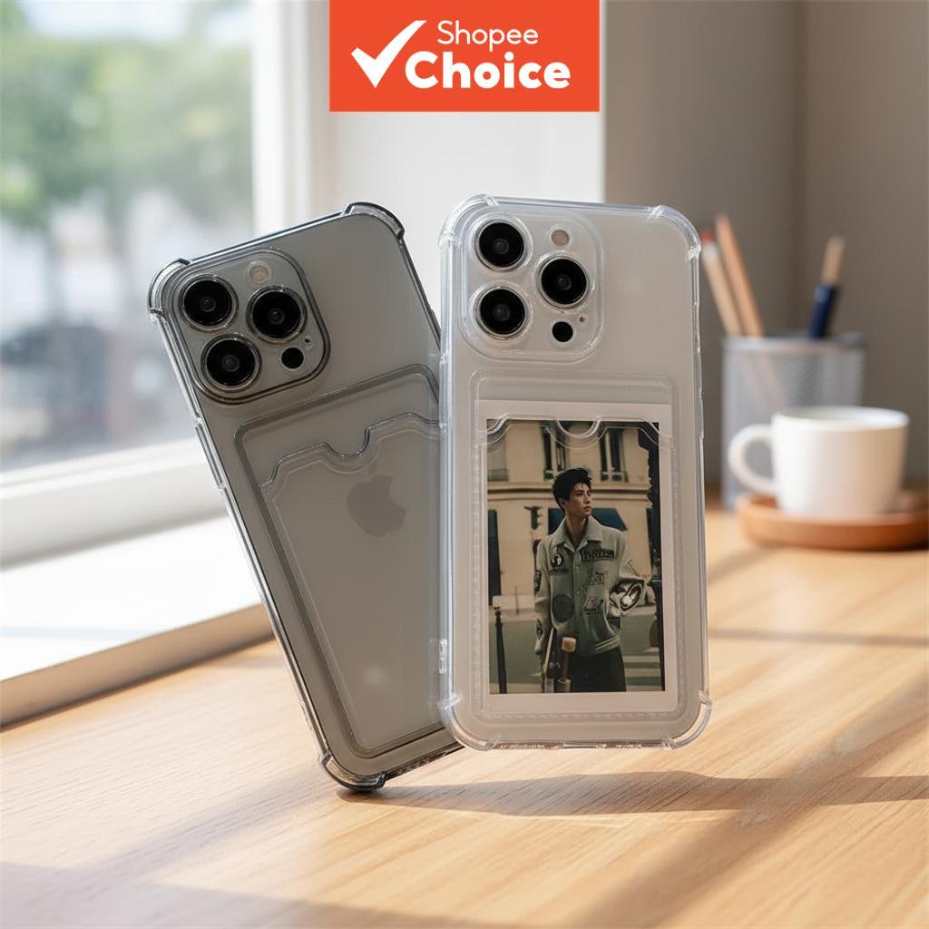 Transparent Candy Color Shockproof Phone Case with Card Holder for iPhone 15 14 13 12 11 Pro Max 8 7 Plus Soft TPU Four Corners Back Cover Sarung Telefon Kalis Kejutan Berwarna Jernih dengan Pemegang Kad untuk iPhone 15 14 13 12 11 Pro Max 8 7 Plus