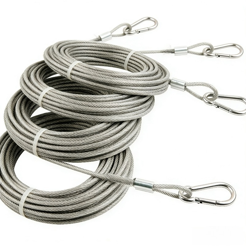 Double-headed Dog Leash Metal Buckle Wire Rope Rust Prevention Training Collar Outdoor 15m